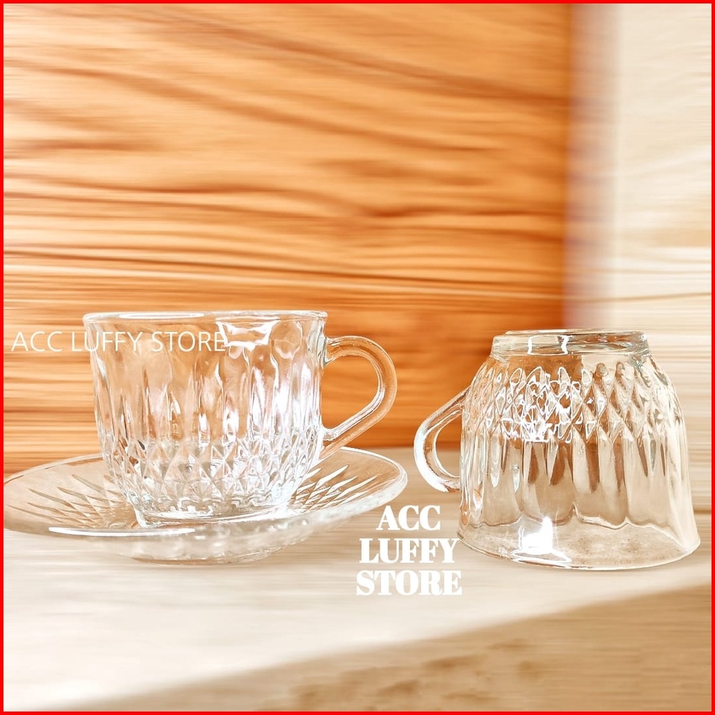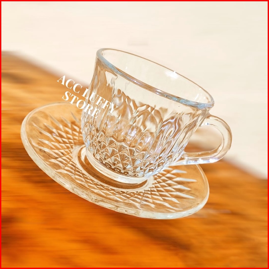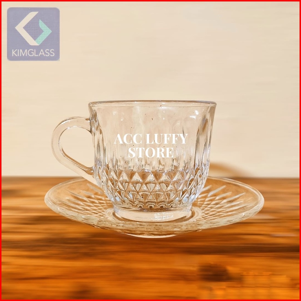 Gelas Kaca 1 Set Berkualitas - Cangkir Kopi Dan Wadah 1 Set - Cangkir Kaca - Gelas Kaca Kimglas Berklualitas
