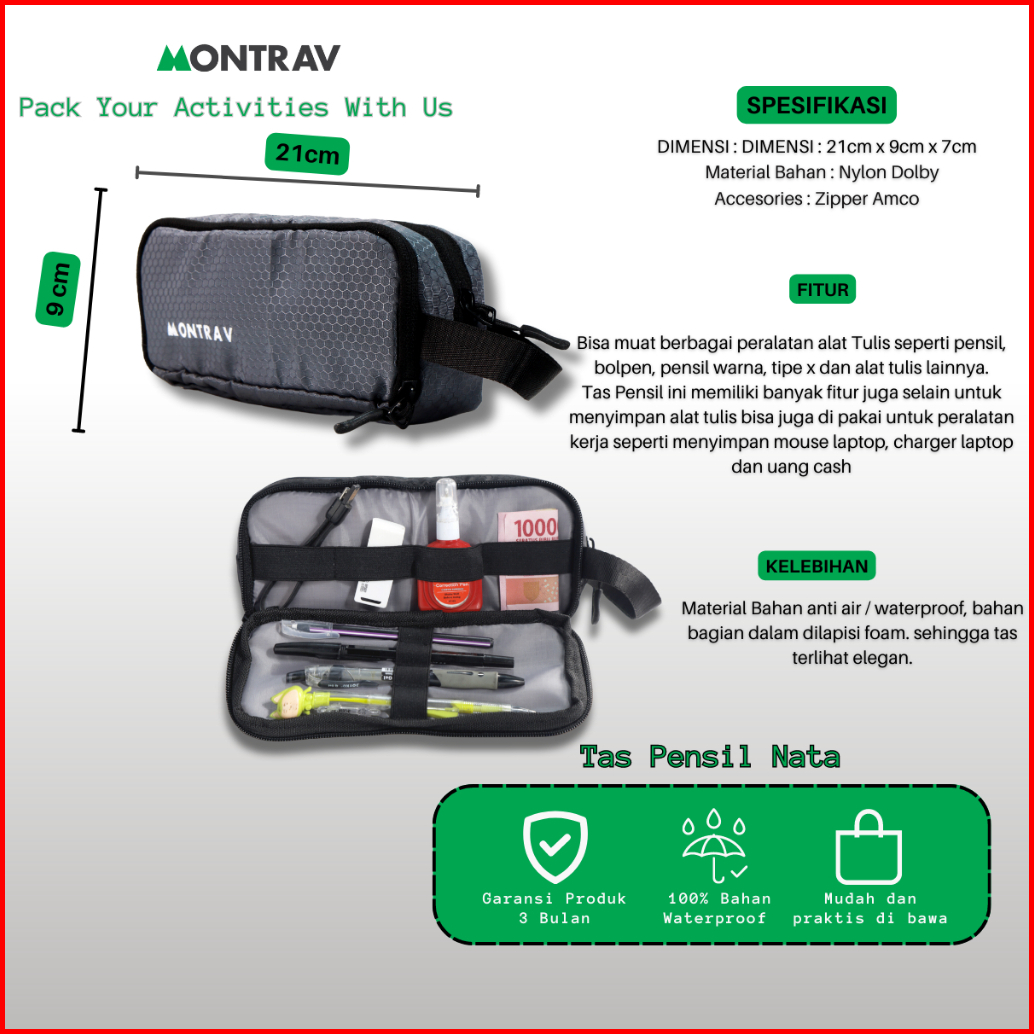 Montrav - Travel Kit Organizer - Tempat Pensil Dan Charger - Nata