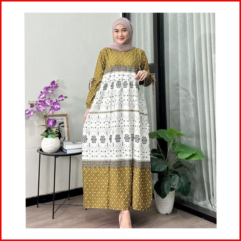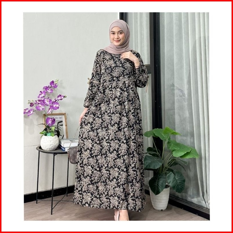 Anjani Midi Dress Rayon Premium Motif Bunga Terbaru Gamis Midi Pita Busui Friendly