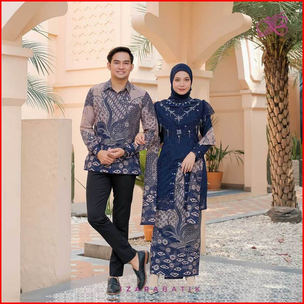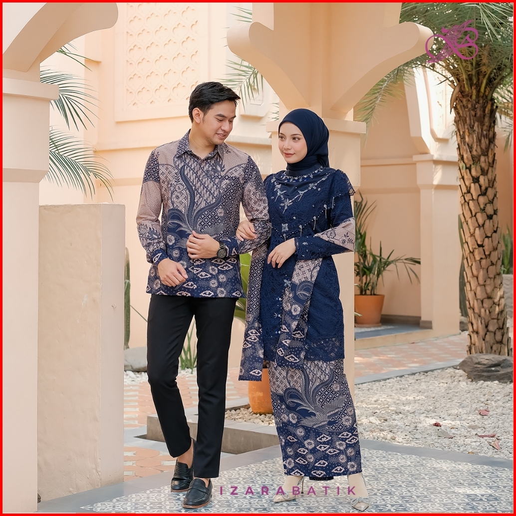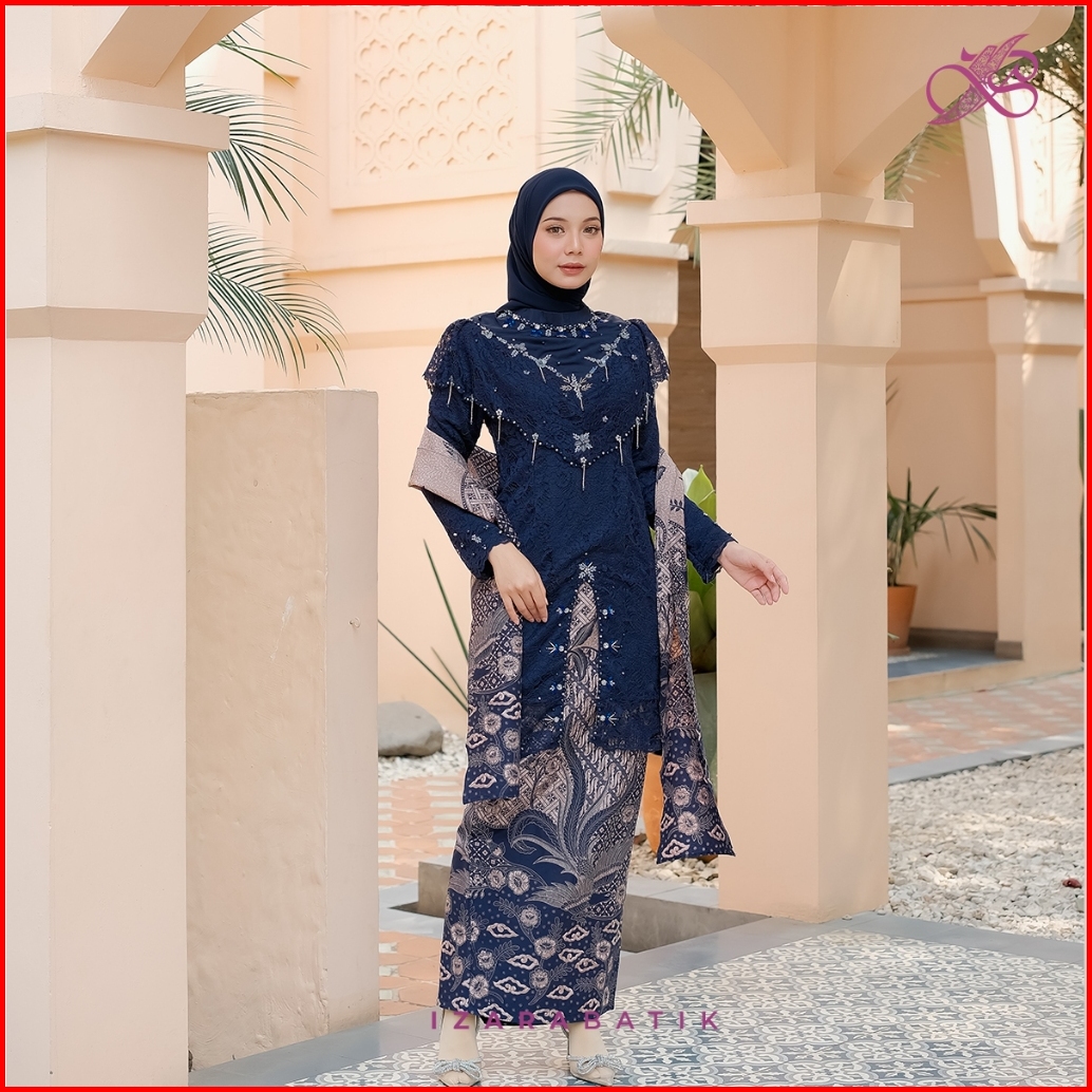 Izarabatik - Zivana Navy Set Kebaya Modern Couple Wisuda Lamaran Full Payet Tunangan Kondangan Bridesmaid