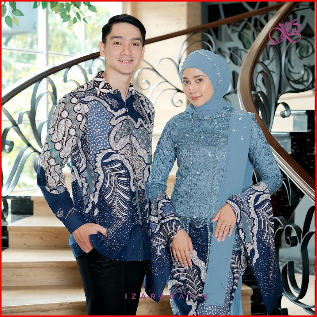 Izarabatik - Kharisma Denim Set Kebaya Batik Modern Couple Wisuda Lamaran Full Payet Tunangan Kondangan Bridesmaid