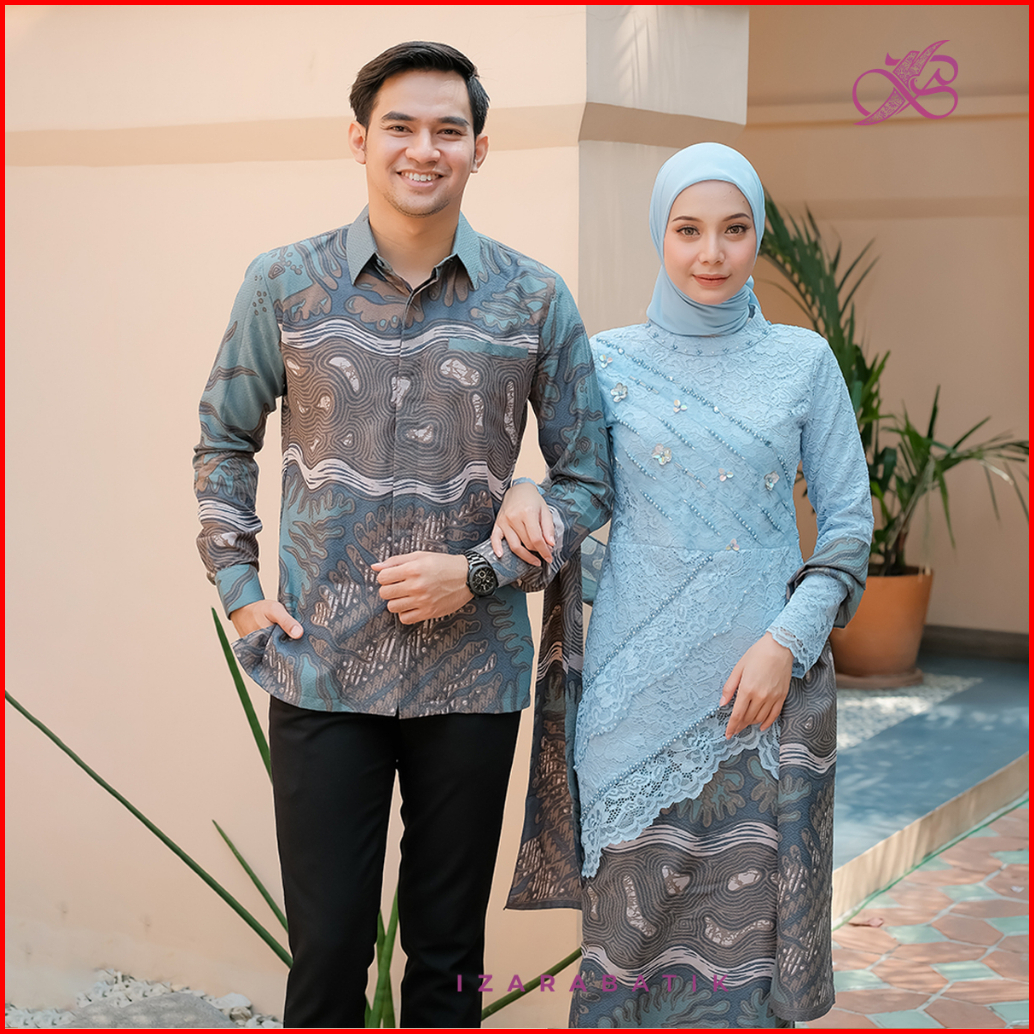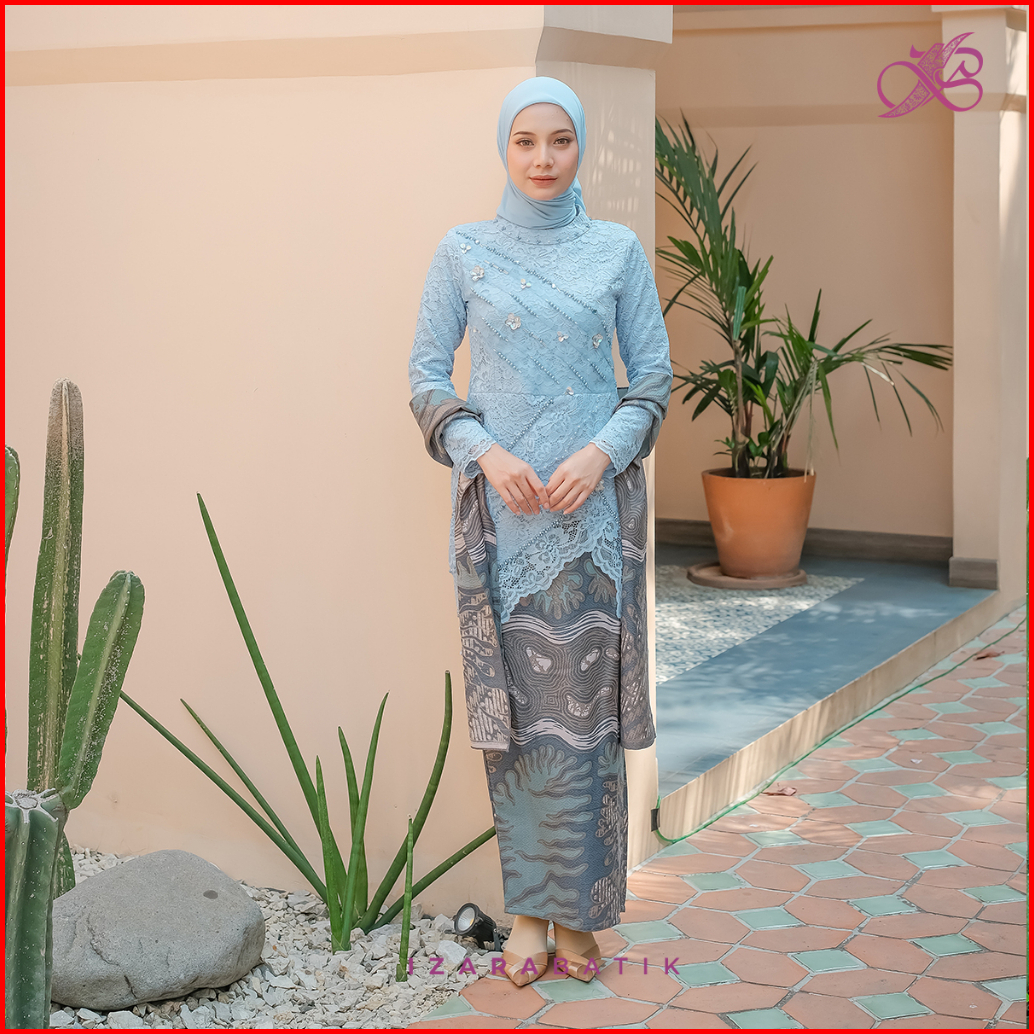 Izarabatik - Ivana Ice Blueset Kebaya Batik Modern Couple Wisuda Lamaran Full Payet Tunangan Kondangan Bridesmaid