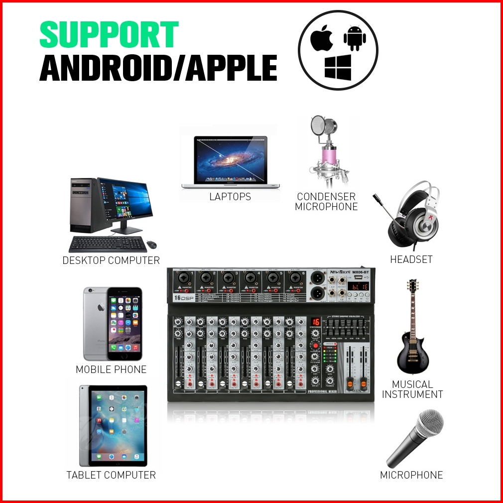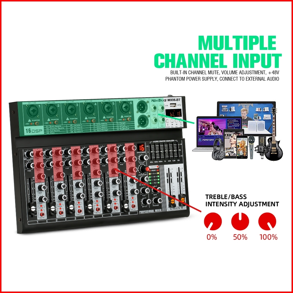 New Baxs Mx06bt Mx04bt Audio Mixer Professional Sound Equalizer Mx06bt Mx04bt 6 4-channel Eq Effect 16 Dsp Signal Usb Bl