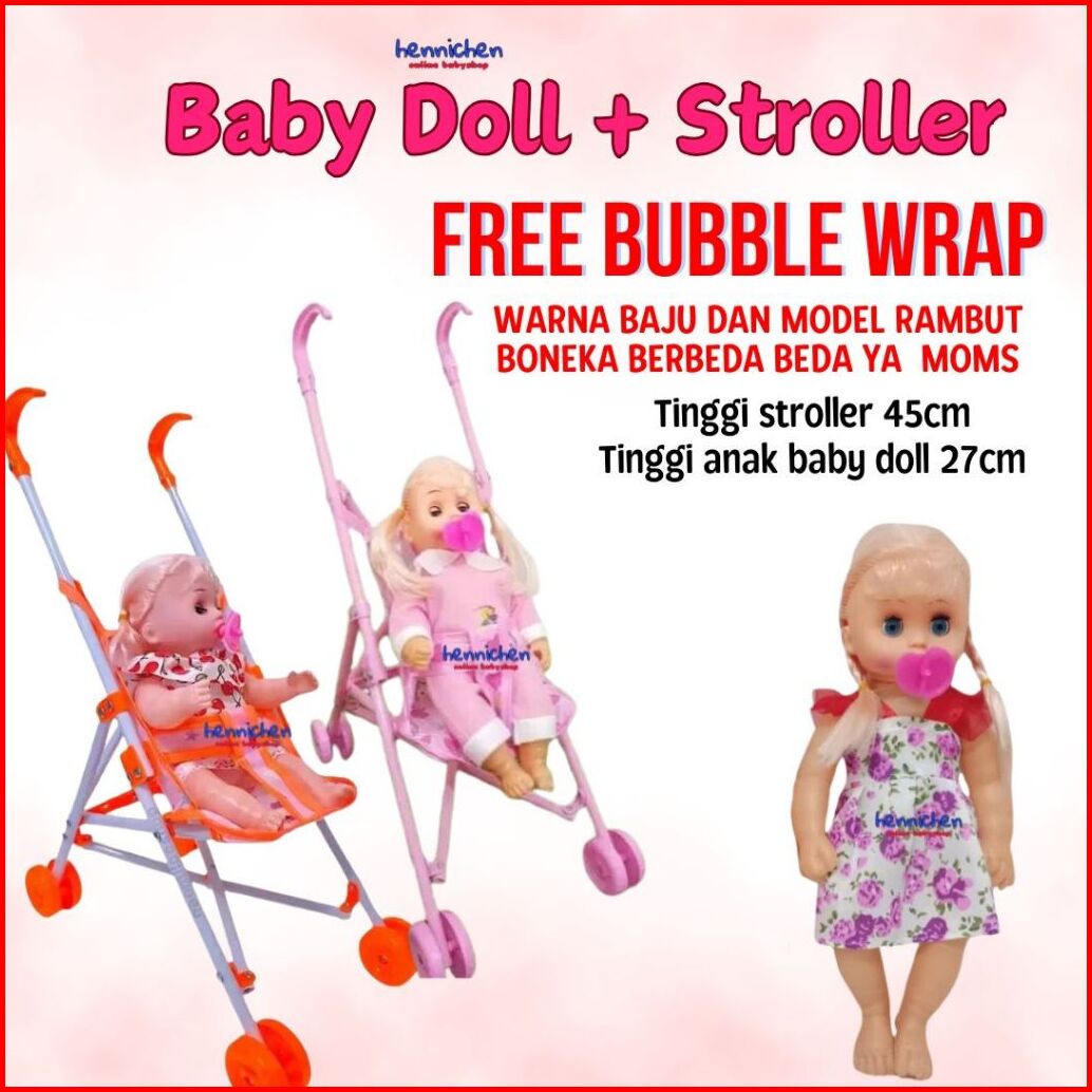 Mainan Anak Baby Doll Stroller Mainan Anak Boneka Bayi Bisa Nangis Dapat Stroller