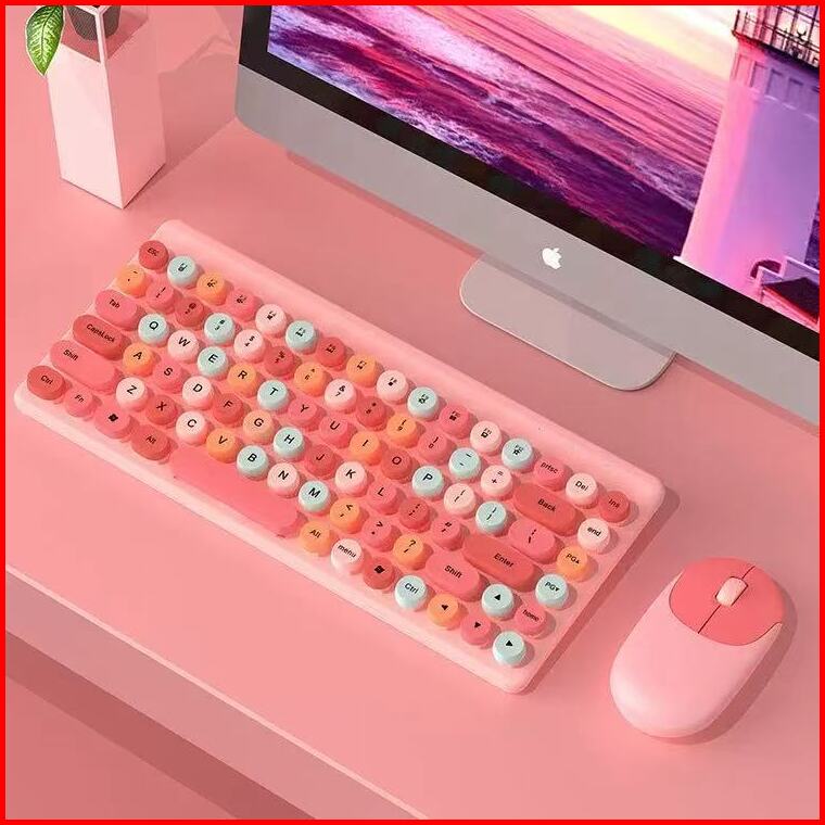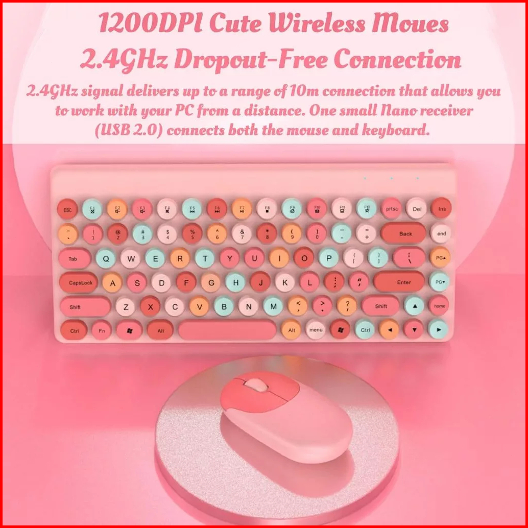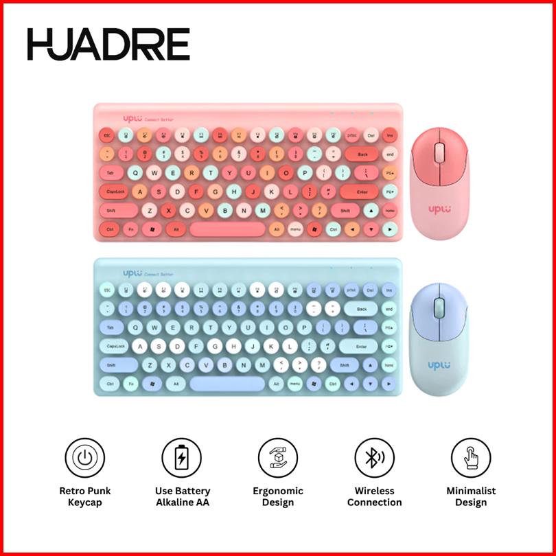 Huadrre Rechargeable Wireless Keyboard Mouse 1 Set 1200dpl Silent Click Gaming Kantor 86 Key Ergonomic Design Lucu Mouse