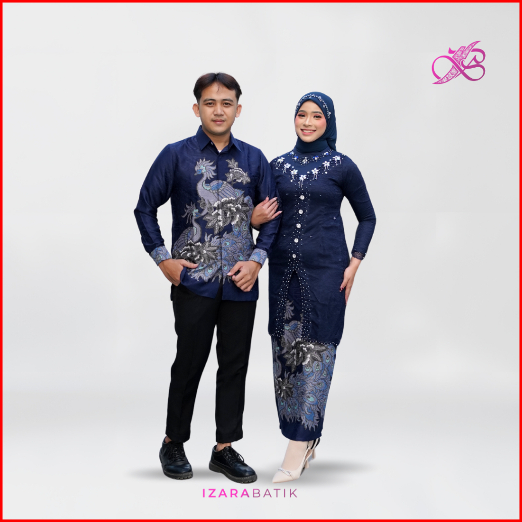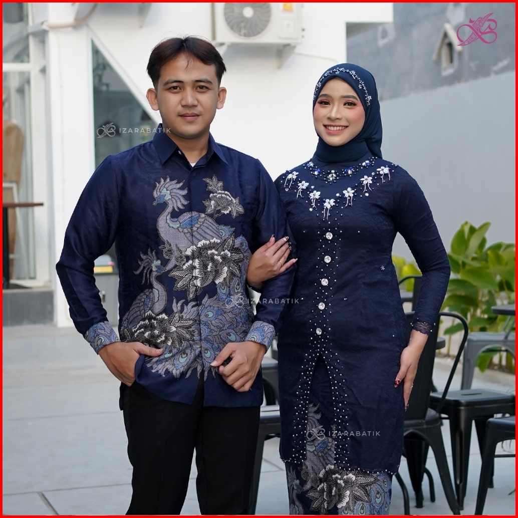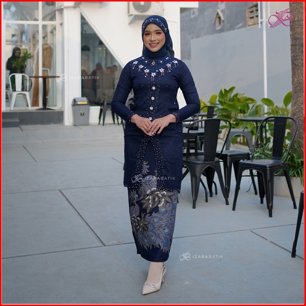 Izarabatik - Anggita Navy Set Kebaya Modern Couple Wisuda Lamaran Full Payet Tunangan Kondangan Bridesmaid