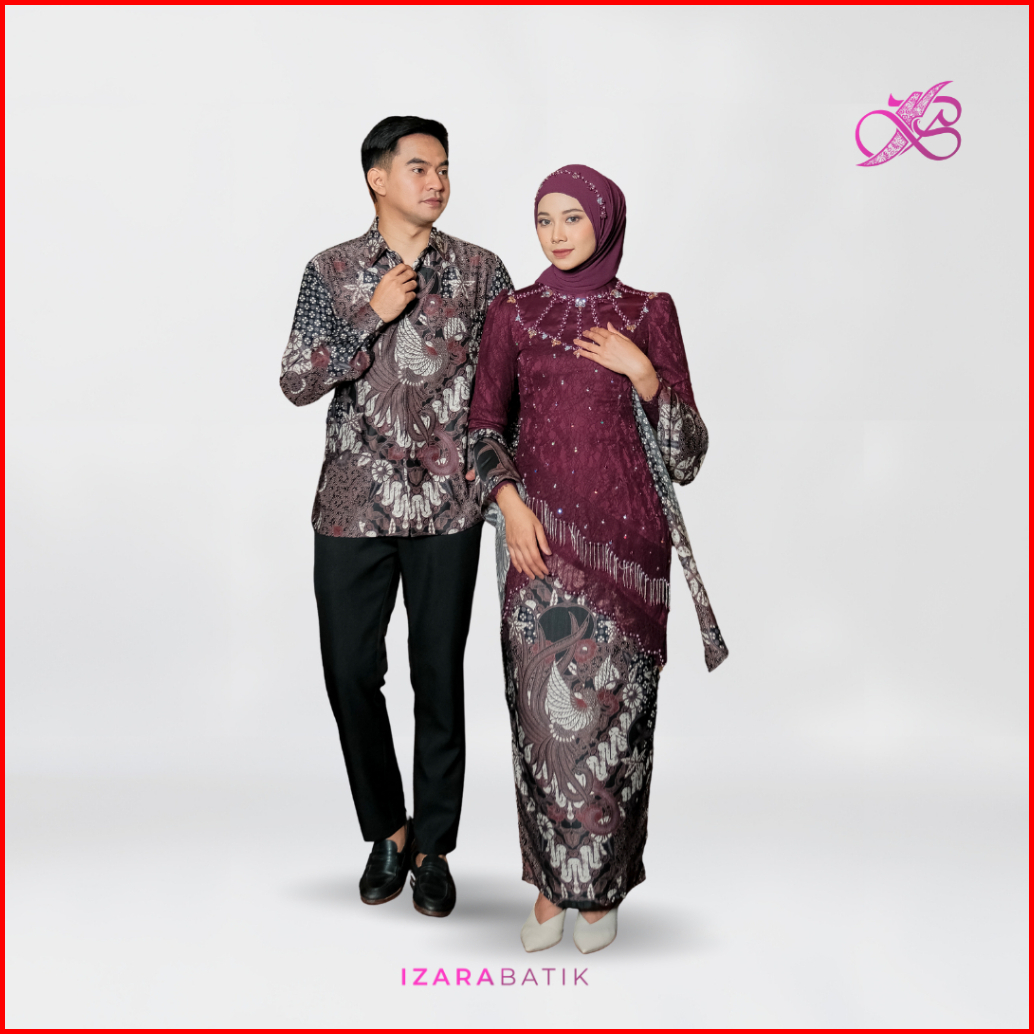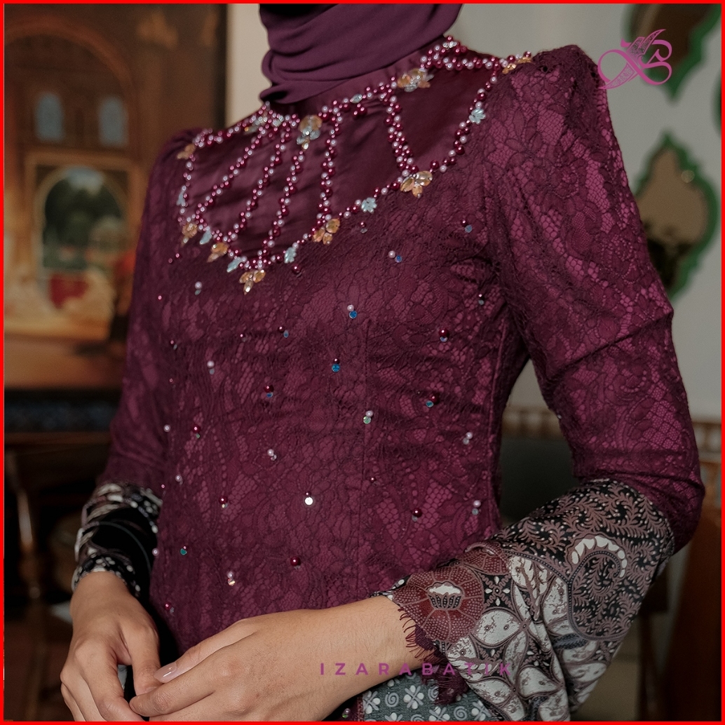 Izarabatik - Ceitlyn Burgundy Set Kebaya Batik Modern Couple Wisuda Lamaran Full Payet Tunangan Kondangan Bridesmaid