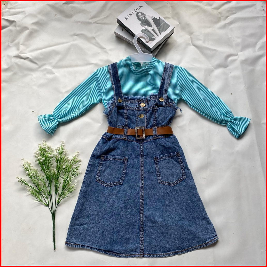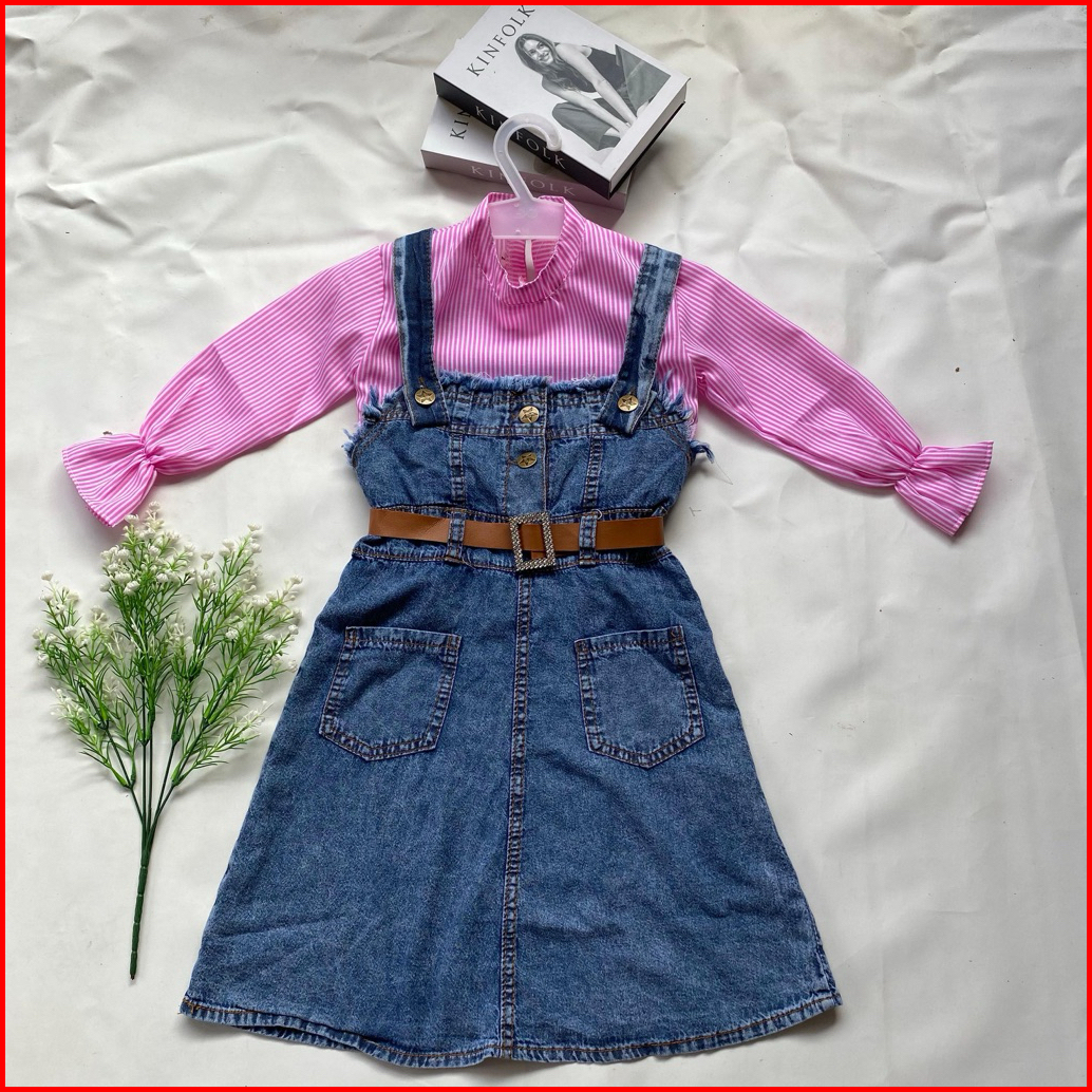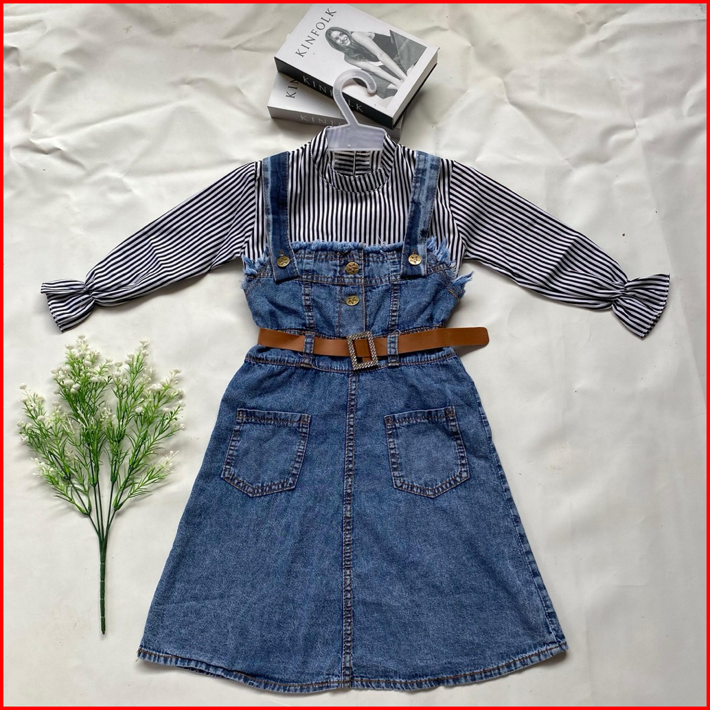One Set Over All Anak Perempuan Setelan Over All Anak Model Selvia Terbaru 2-12 Tahun Jeans Fashion