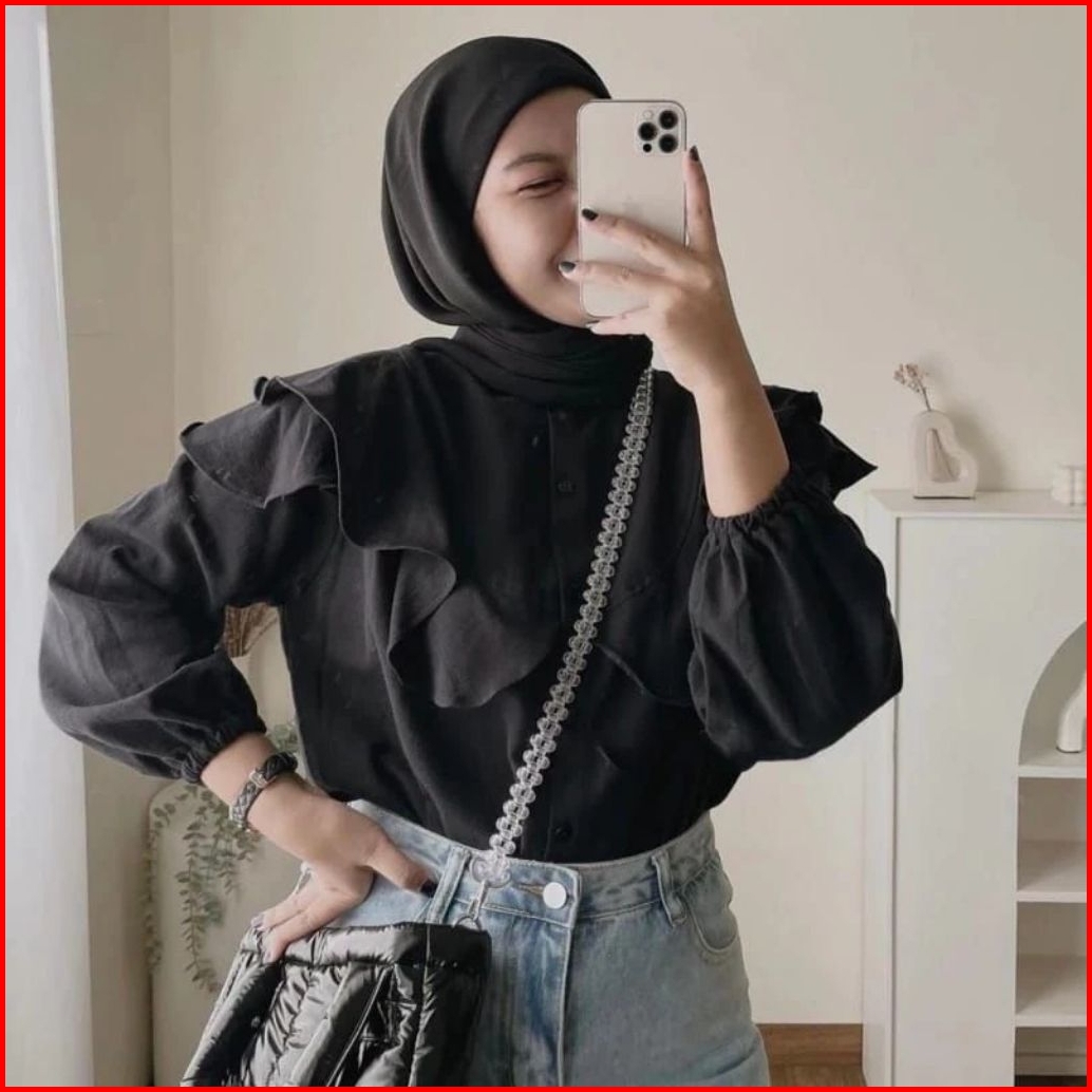 Blouse Ruffle Polo Linen Rafella - Yure Blouse Ruffle - Kemeja Wanita Viral
