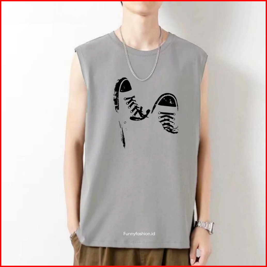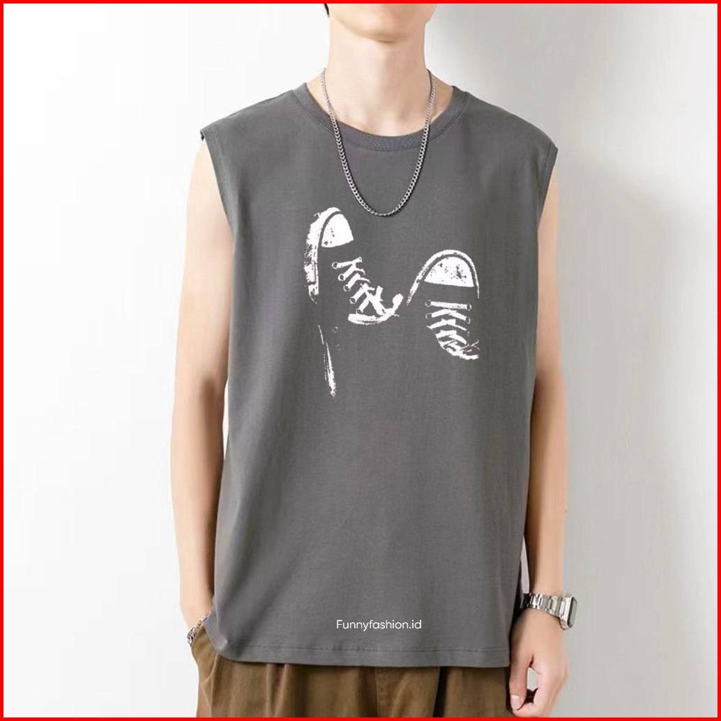Singlet Pria Shoes Dewasa Terbaru Kaos Tanpa Lengan Distro Baju Gym Santai Kekinian