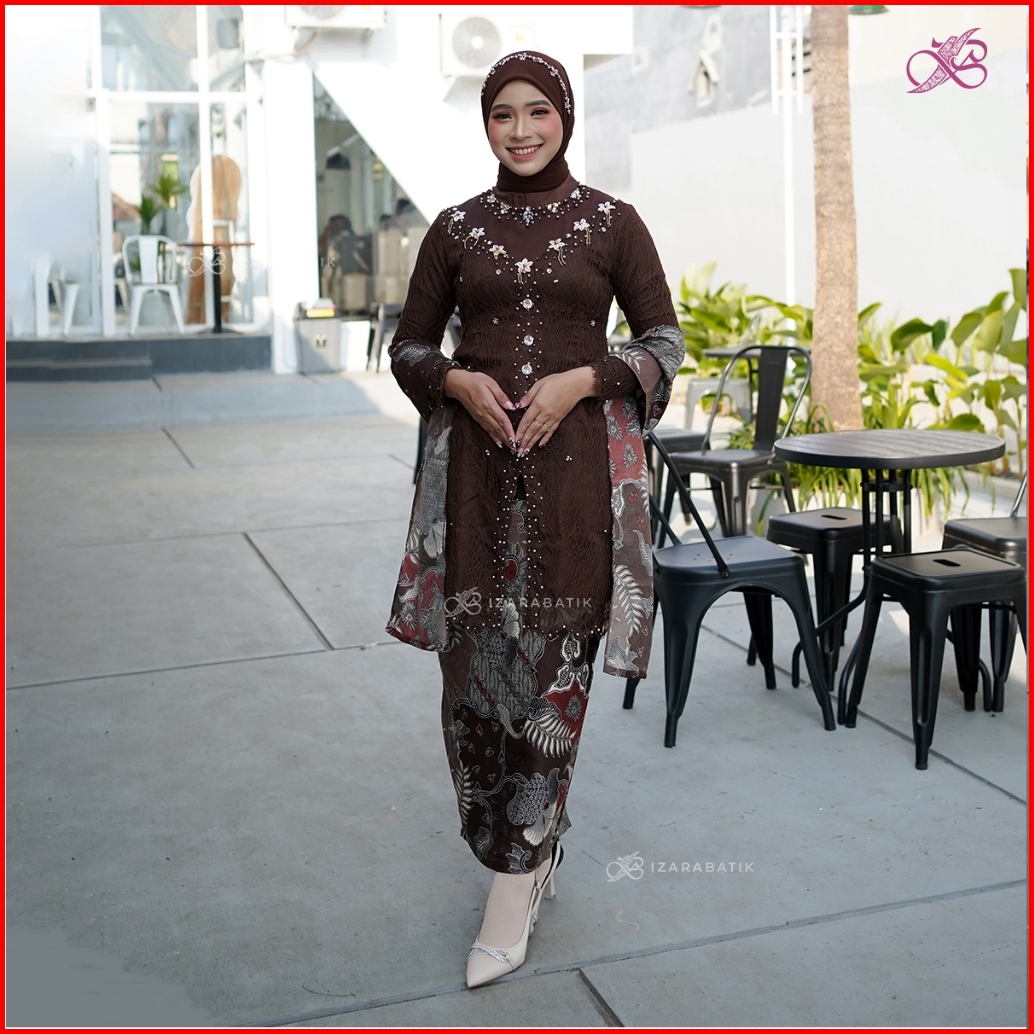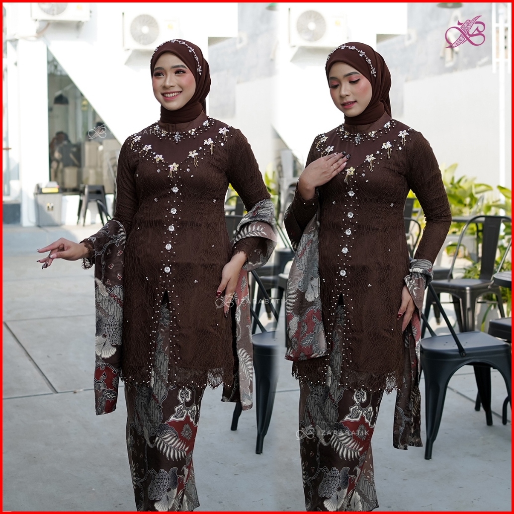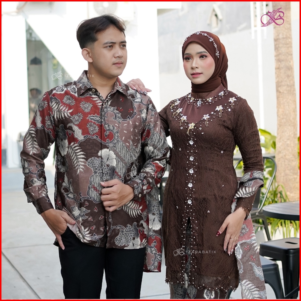 Izarabatik - Anggita Mahogany Set Batik Kebaya Modern Couple Wisuda Lamaran Full Payet Tunangan Kondangan Bridesmaid