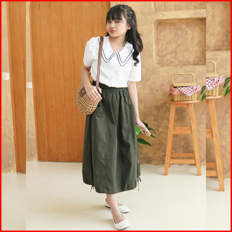 Queenkids - Sharoon Oneset - Setelan Atasan Rok Midi Anak Perempuan