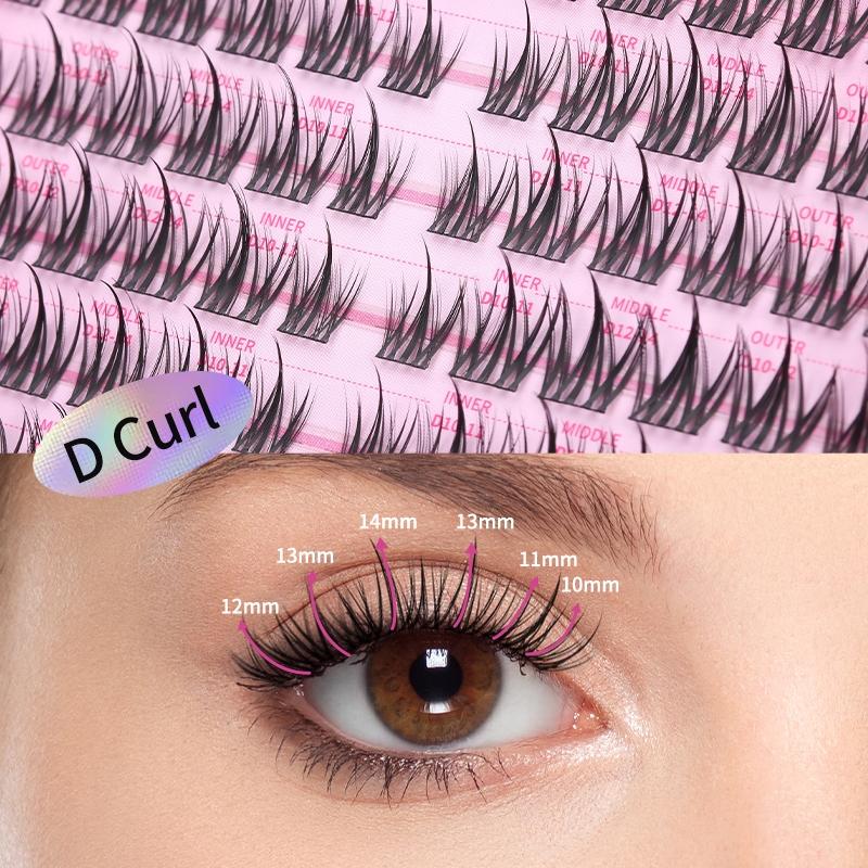 MLEN DIARY Bulu Mata Gaya Manga/Comic Bulu Mata Palsu Ikal D Individu Dapat Digunakan Kembali Panjang 10-14mm Eyelash Ex