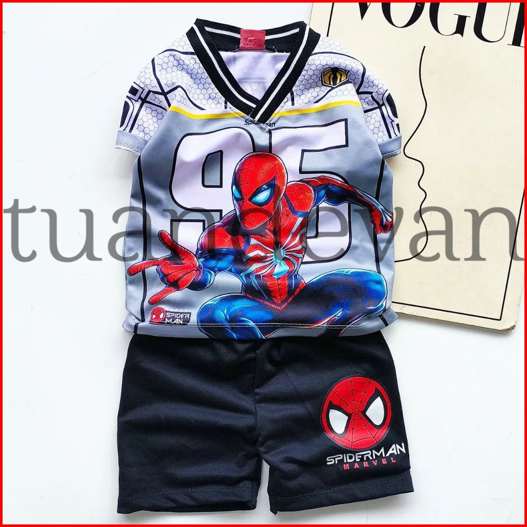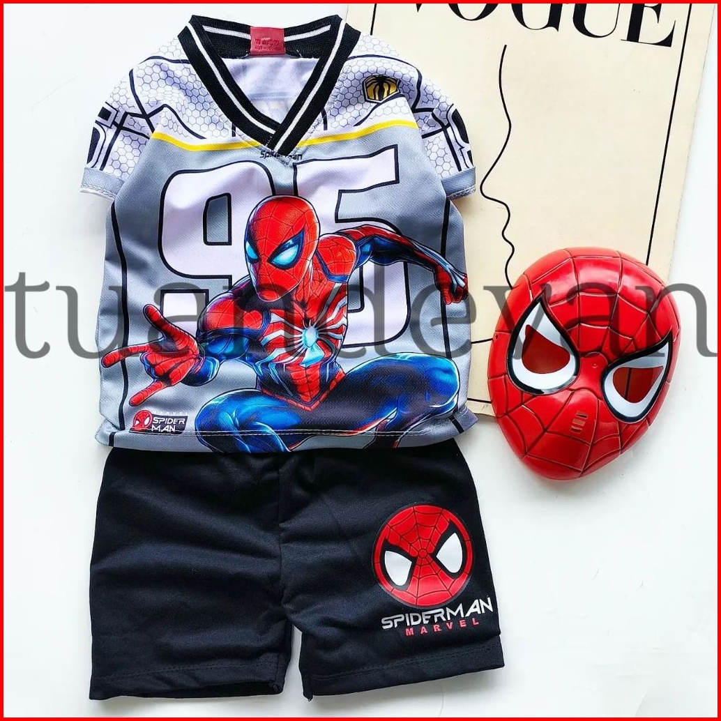 Baju Jersey Spiderman Premium Anak Laki Laki Murah Bahan Bagus Setelan Super Hero Keren Bisa Pakai Topi Untuk Umur 1-10