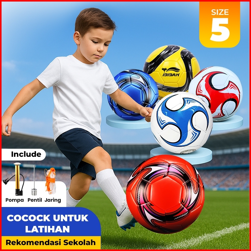 Bola Sepak Size 5 Bola Anak Bonus Pentil Jaring Pompa