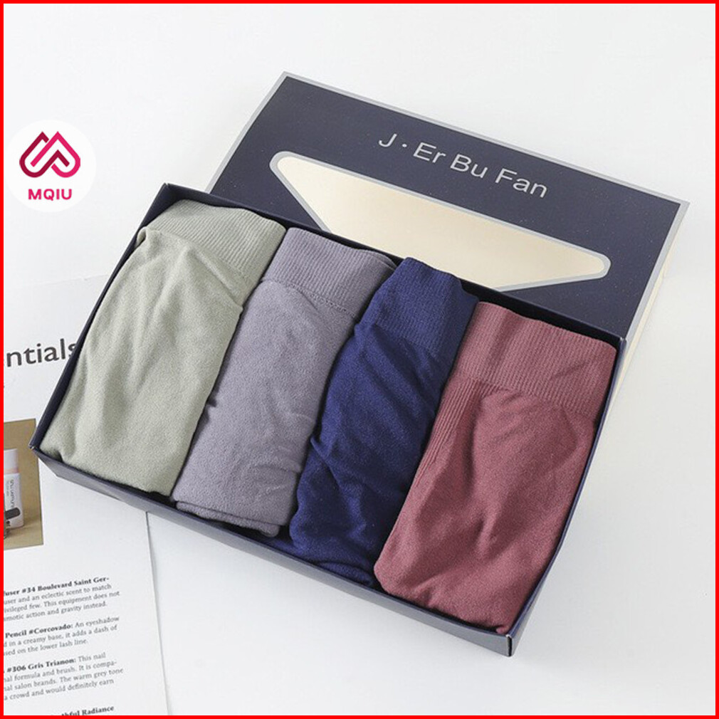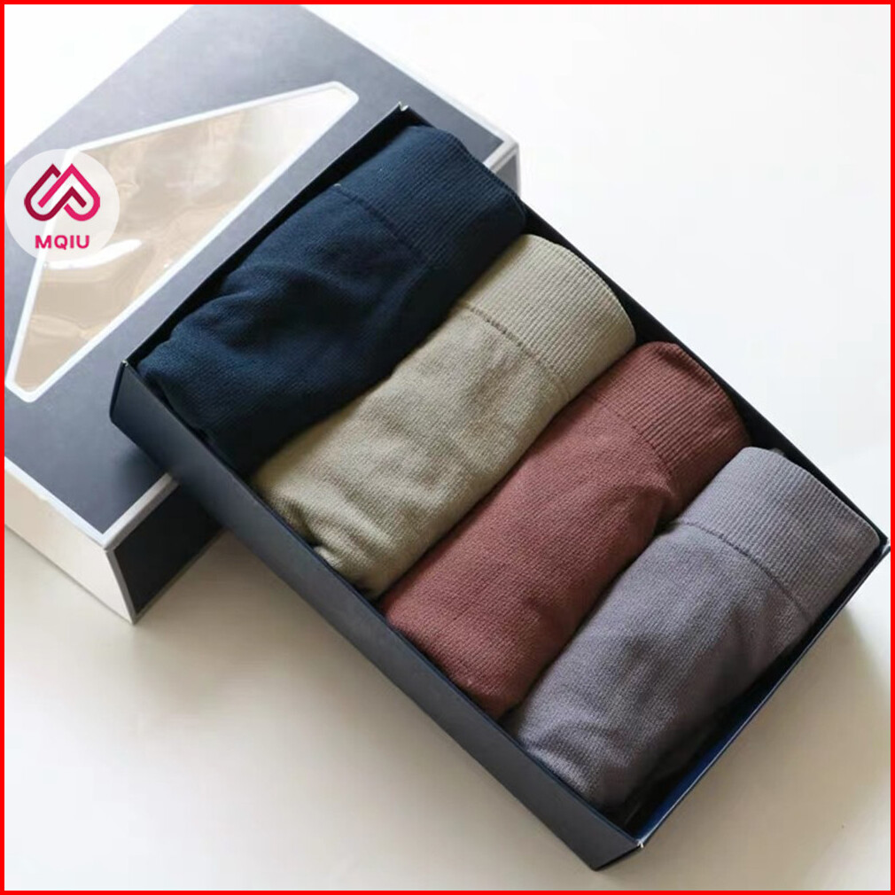 Mqiu - 1 Box Isi 4pcs Boxer Pria Polos Celana Dalam Yang Nyaman Bernapas Impor High Quality Cd Pria Je4110