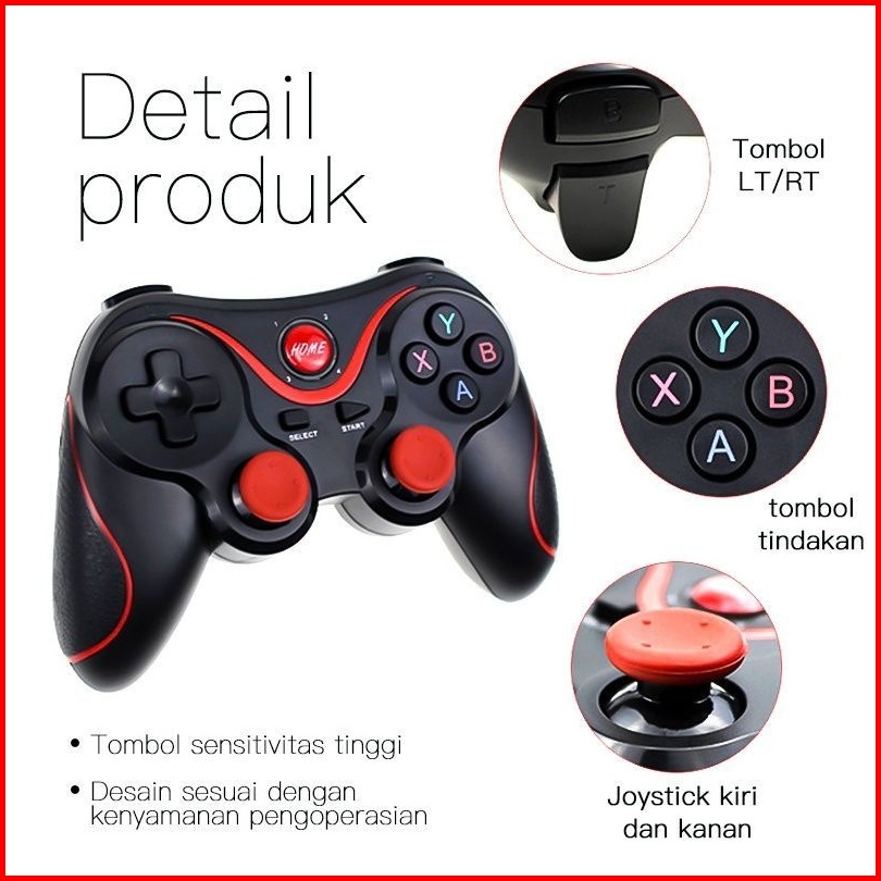 Gamepad X3 Game Pad Bluetooth Wireless Plus Holder Kabel Usb Controller Hp