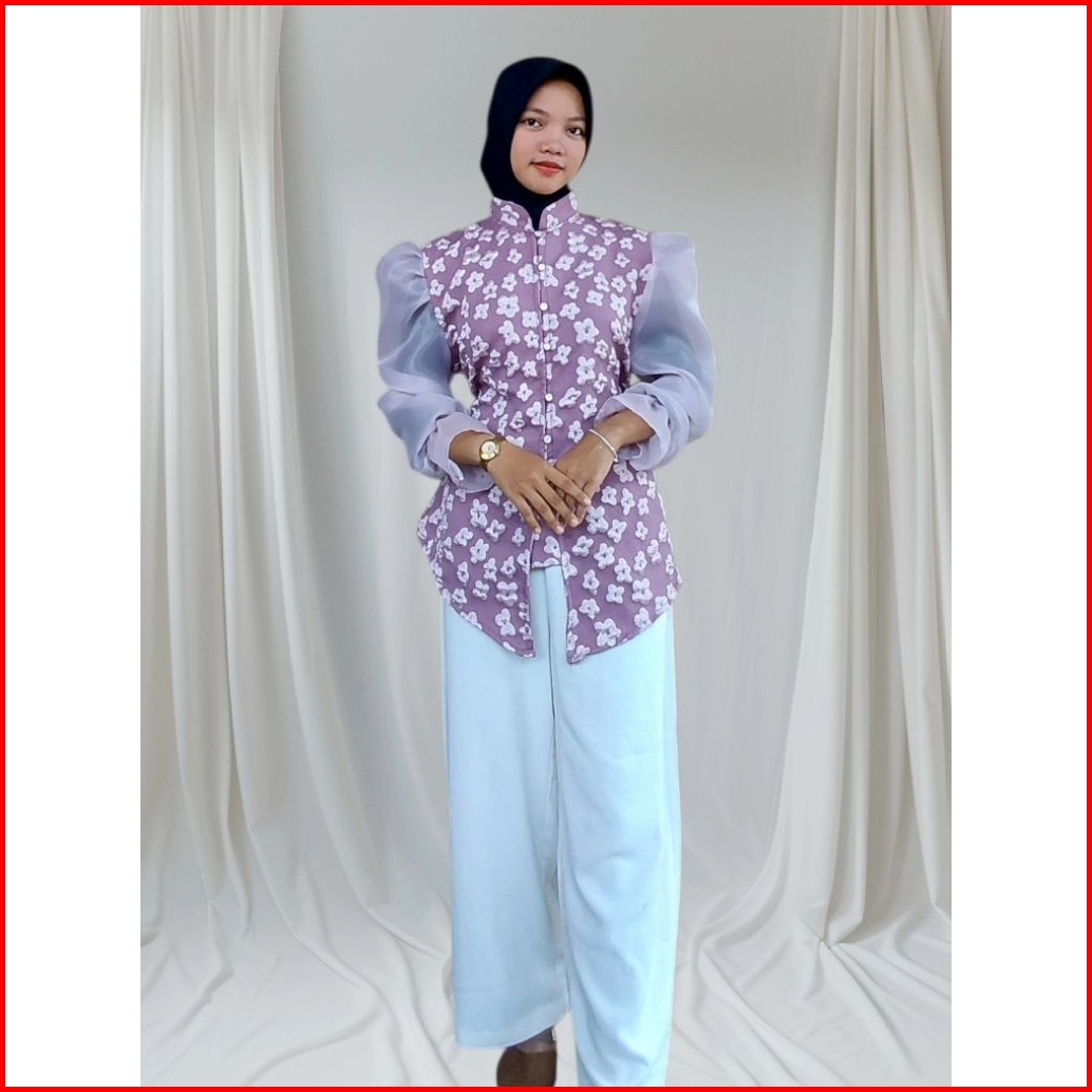 Inara Kebaya Modern Mix Organza Baju Kondangan Wisuda Lebaran Atasan Wanita Mewah Dan Elegan
