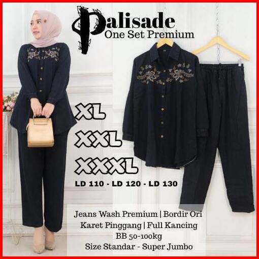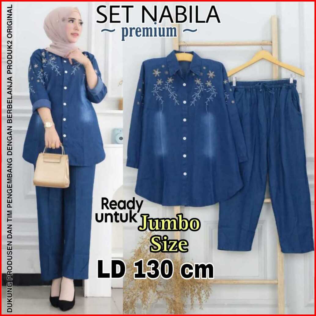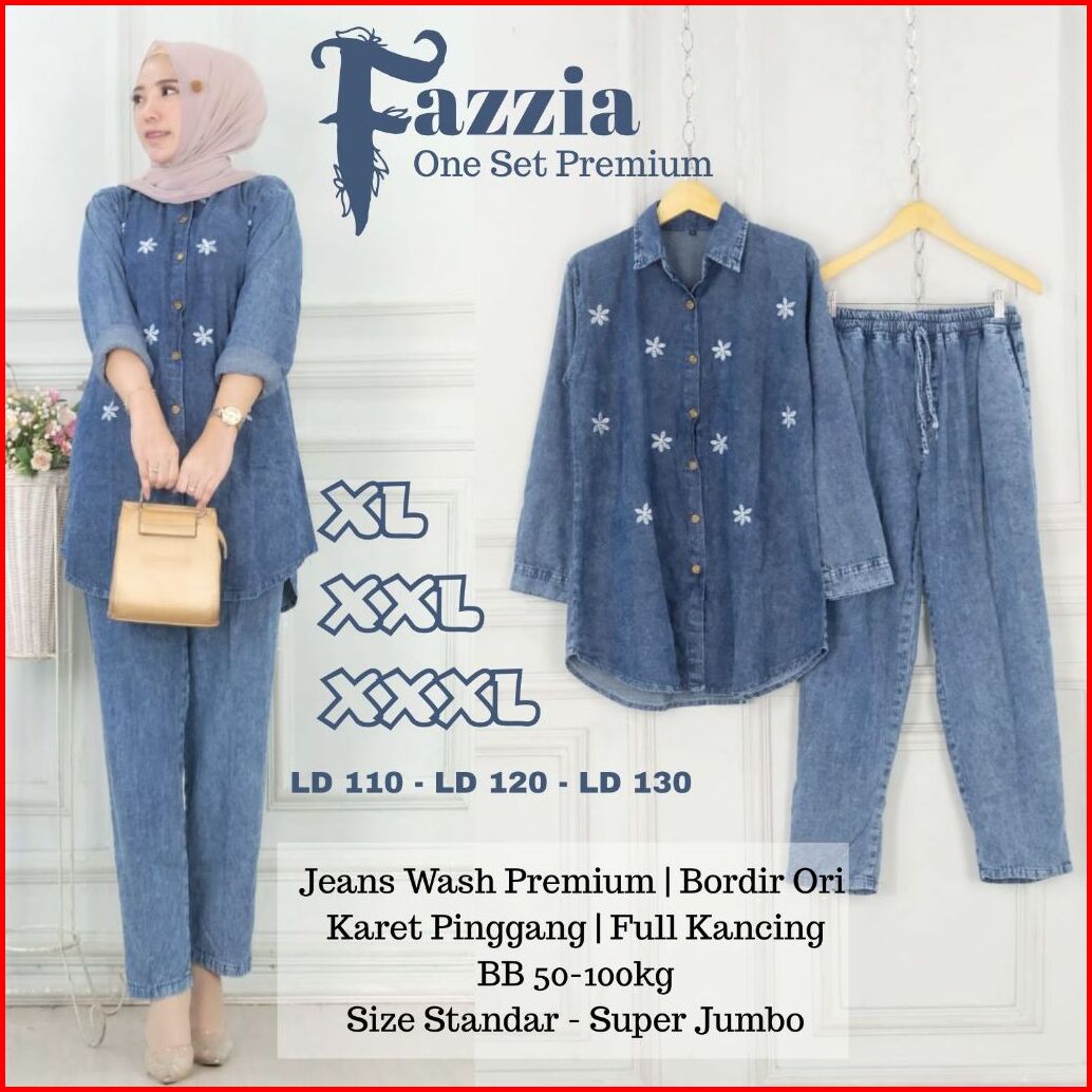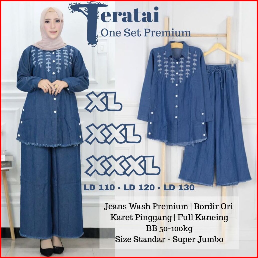 Setelan Wanita Jeans Bb 50 - 100 Kg Size Kecil S D Jumbo Super Jumbo Big Size Motif Bordir Terlaris