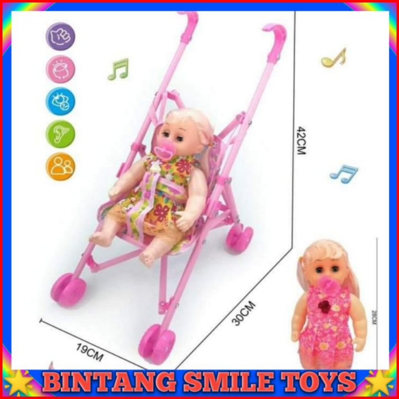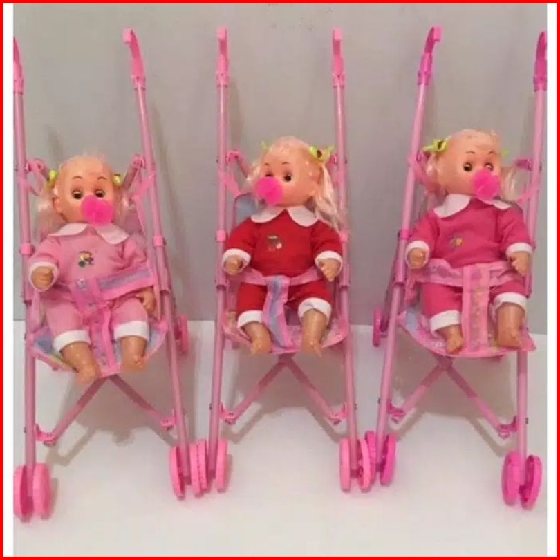Mainan Anak Stroller Boneka Bayi Stoller Dorongan Boneka Panggil Papa Mama Bisa Nangis Promo Termurah