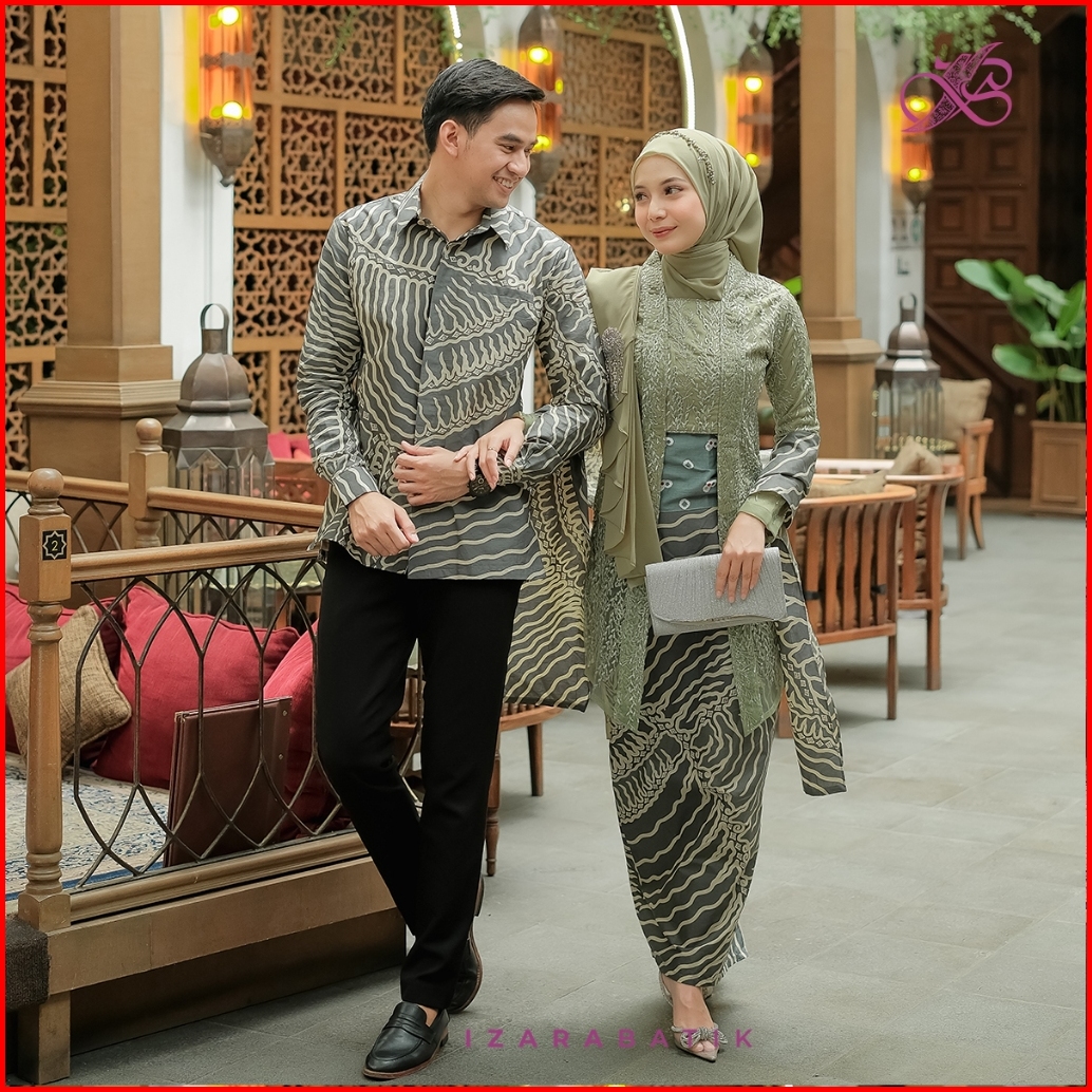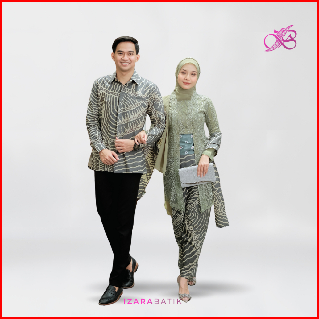 Izarabatik - Kutubaru Ratih Sage Silver Set Kebaya Batik Modern Couple Wisuda Lamaran Tunangan Kondangan Bridesmaid