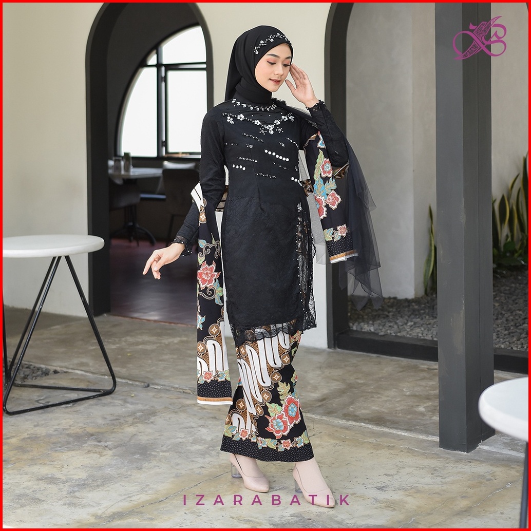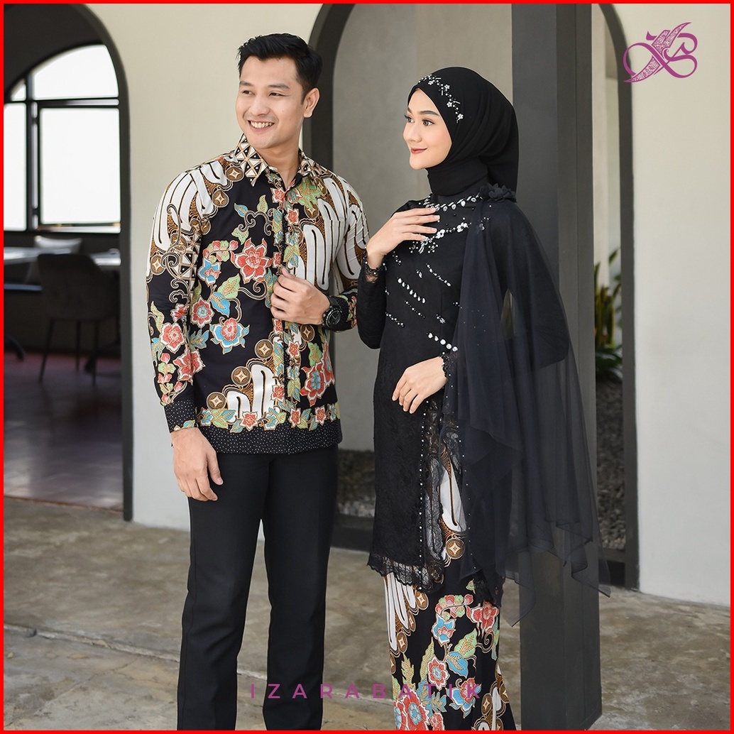 Izarabatik - Zerina Hitam Set Kebaya Batik Modern Couple Wisuda Lamaran Full Payet Tunangan Kondangan Bridesmaid