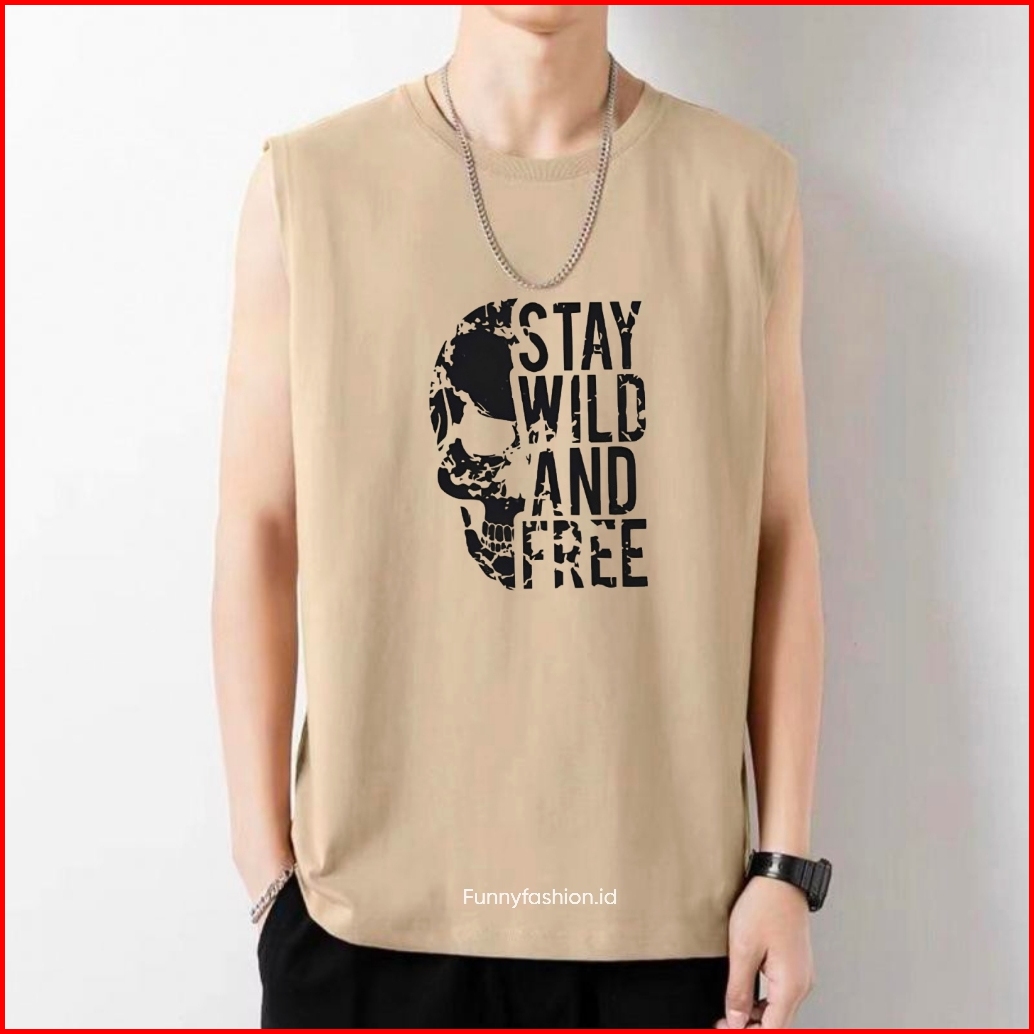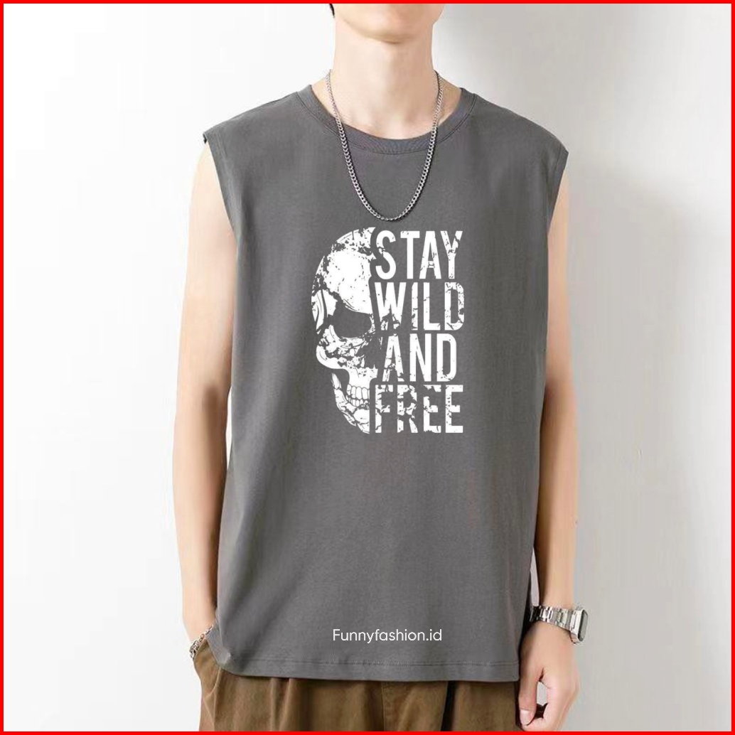 Funnyfashion Singlet Pria Stay Wild And Free - Singlet Pria Distro Keren - Kaos Gym Santai