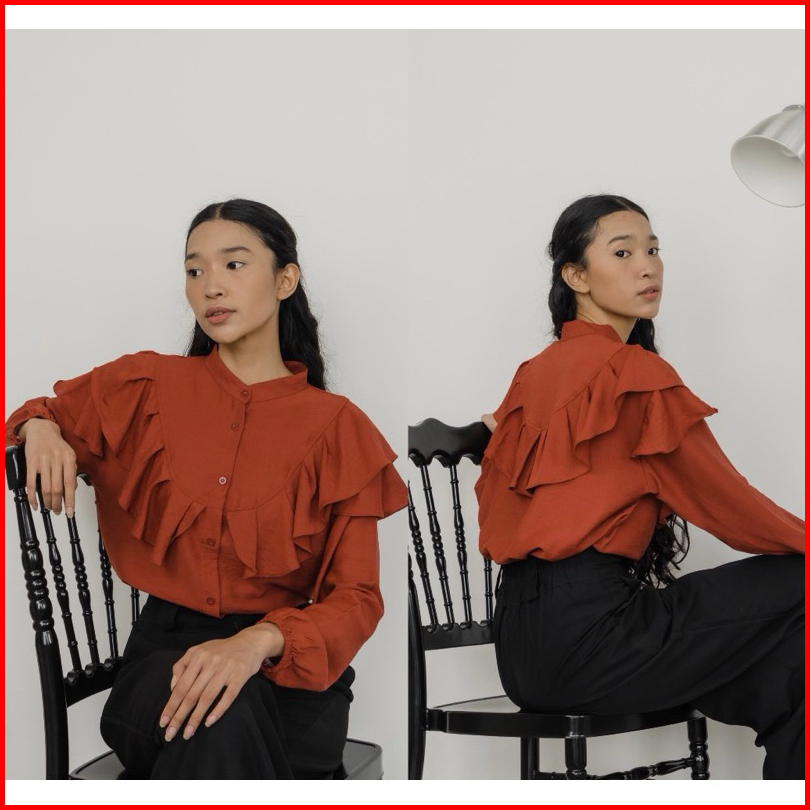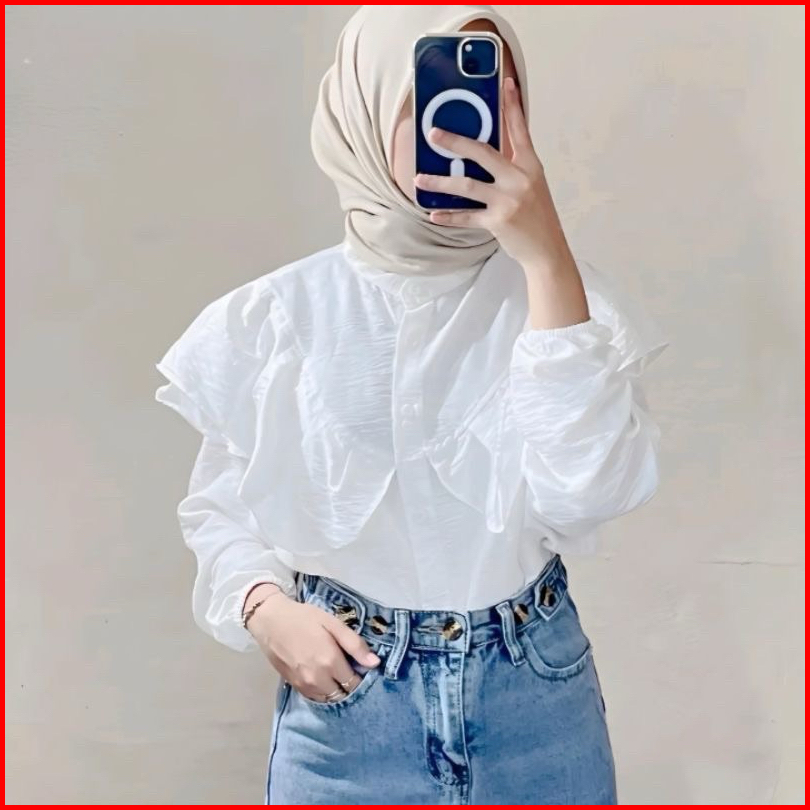 Blouse Ruffle Polo Linen Kemeja Wanita Premium