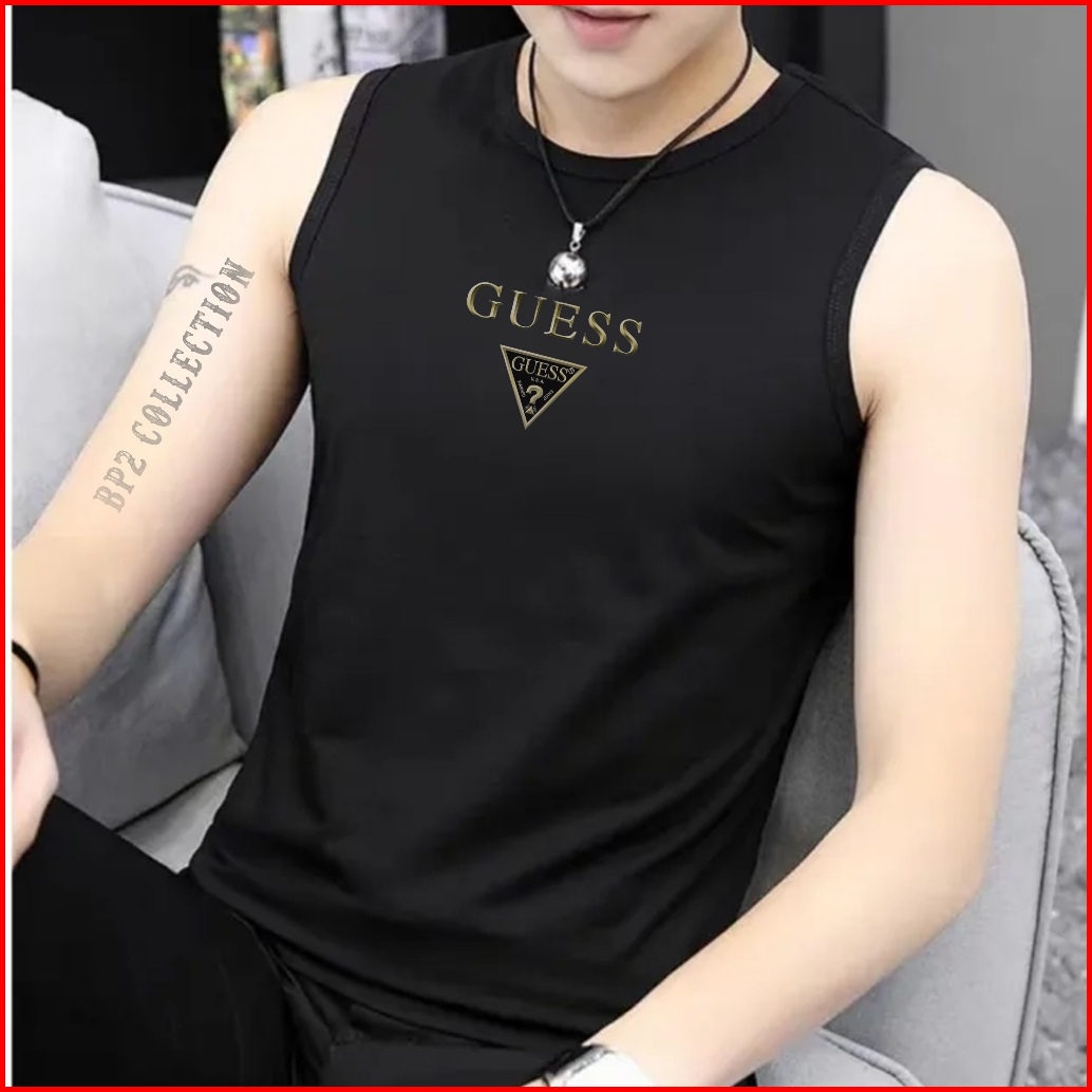 Singlet Pria Logo Gues Baju Basket Pria Kaos Tanpa Lengan Pria Kaos Oblong Singlet Baju Santai Pria Kensi Pria Murah