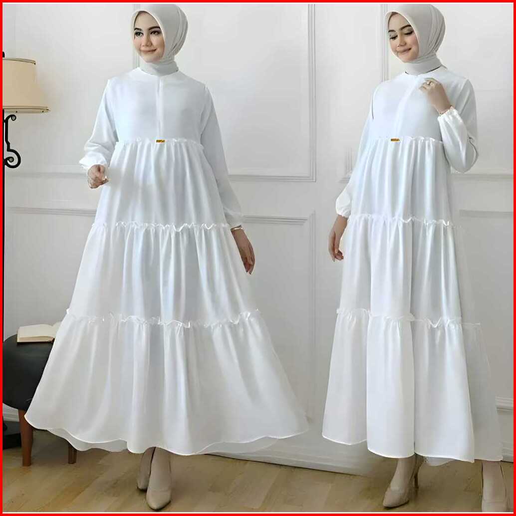 Gamis Terbaru 2025 Lebaran Wanita Putih Bersih An Nisa Rempel Susun 3 Mewah Masik Haji