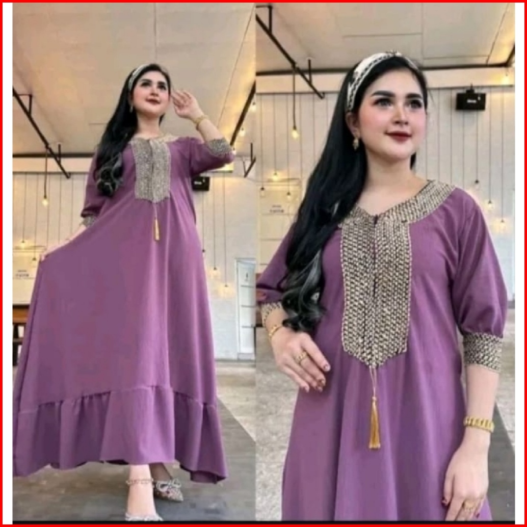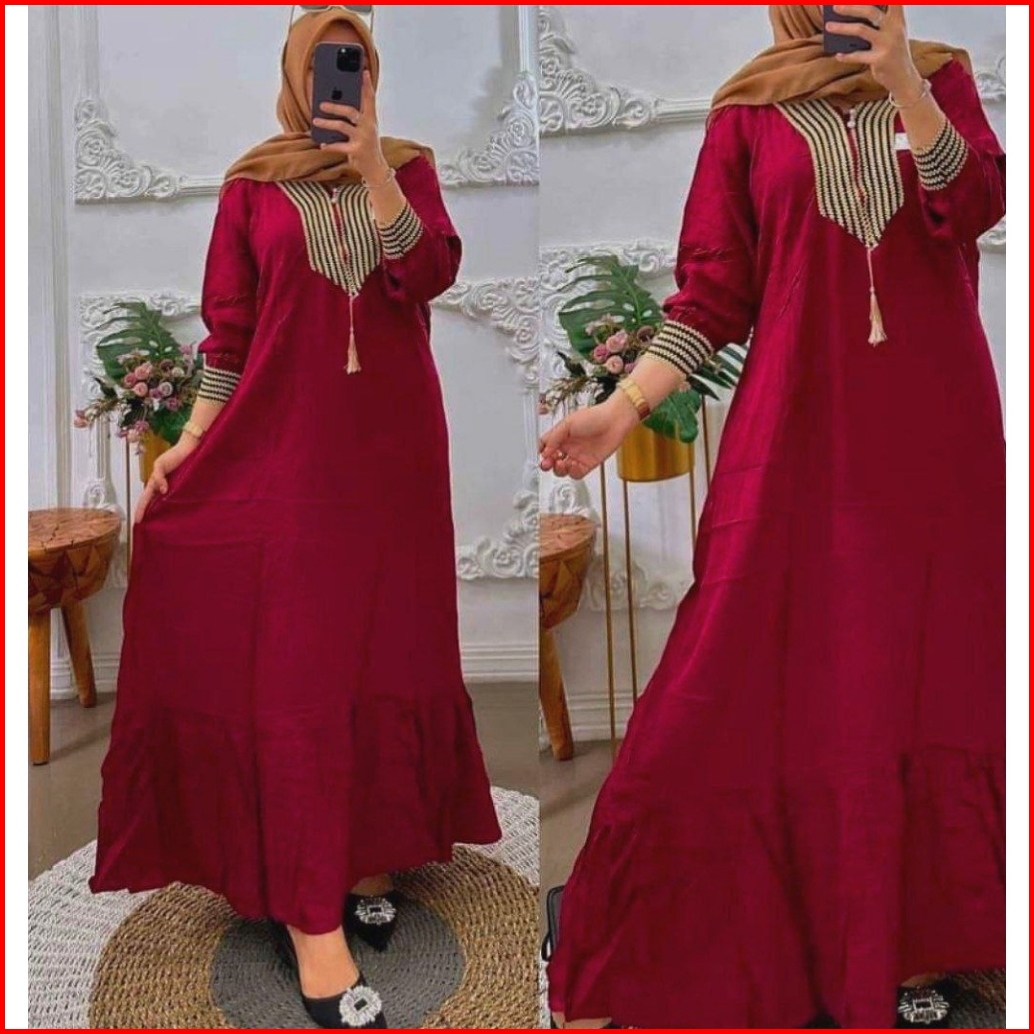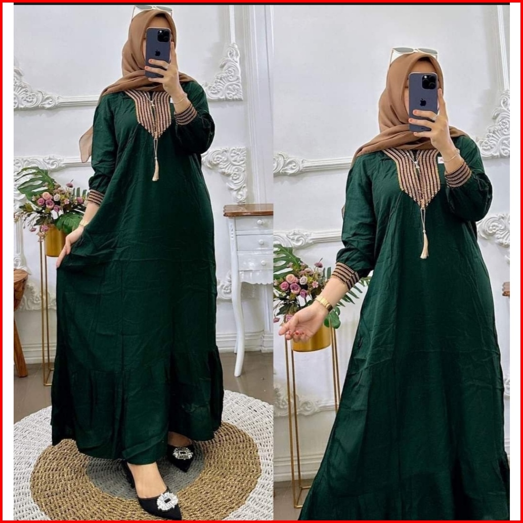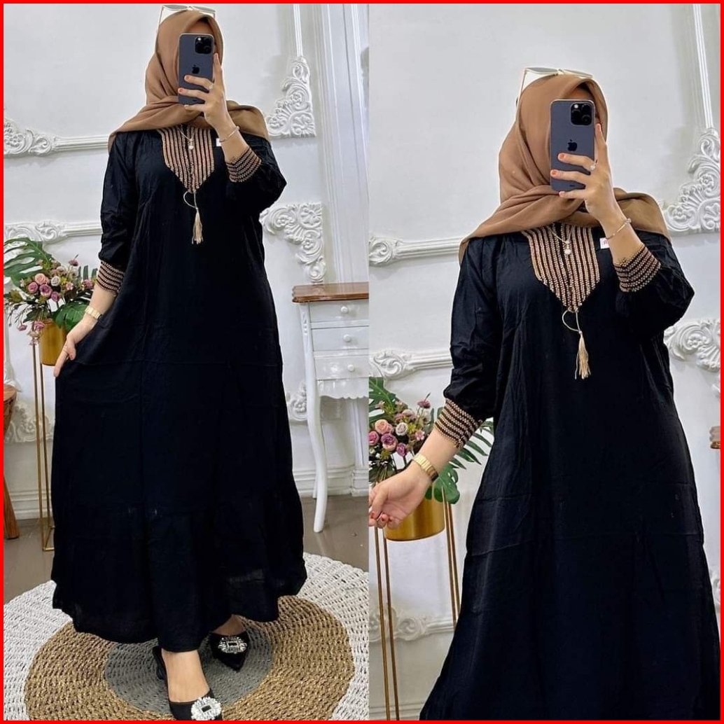 Gamis Sultan Renda Cotton Rayon Premium Dress Kaftan Arab Polos Simple Busui Friendly Hitam