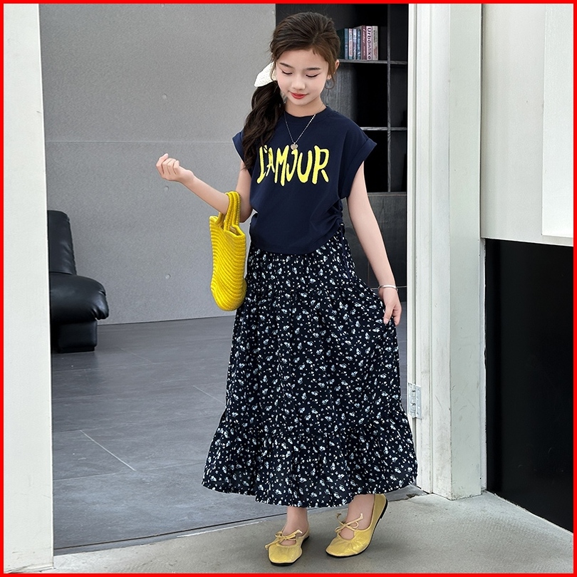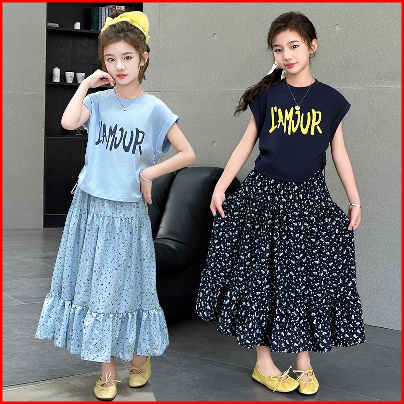 Lisyagirl - Setelan Rok Lily Pakaian Anak Perempuan Model Rok Lily Baju Atasan Kaos Anak Cewe Usia 4-14 Tahun