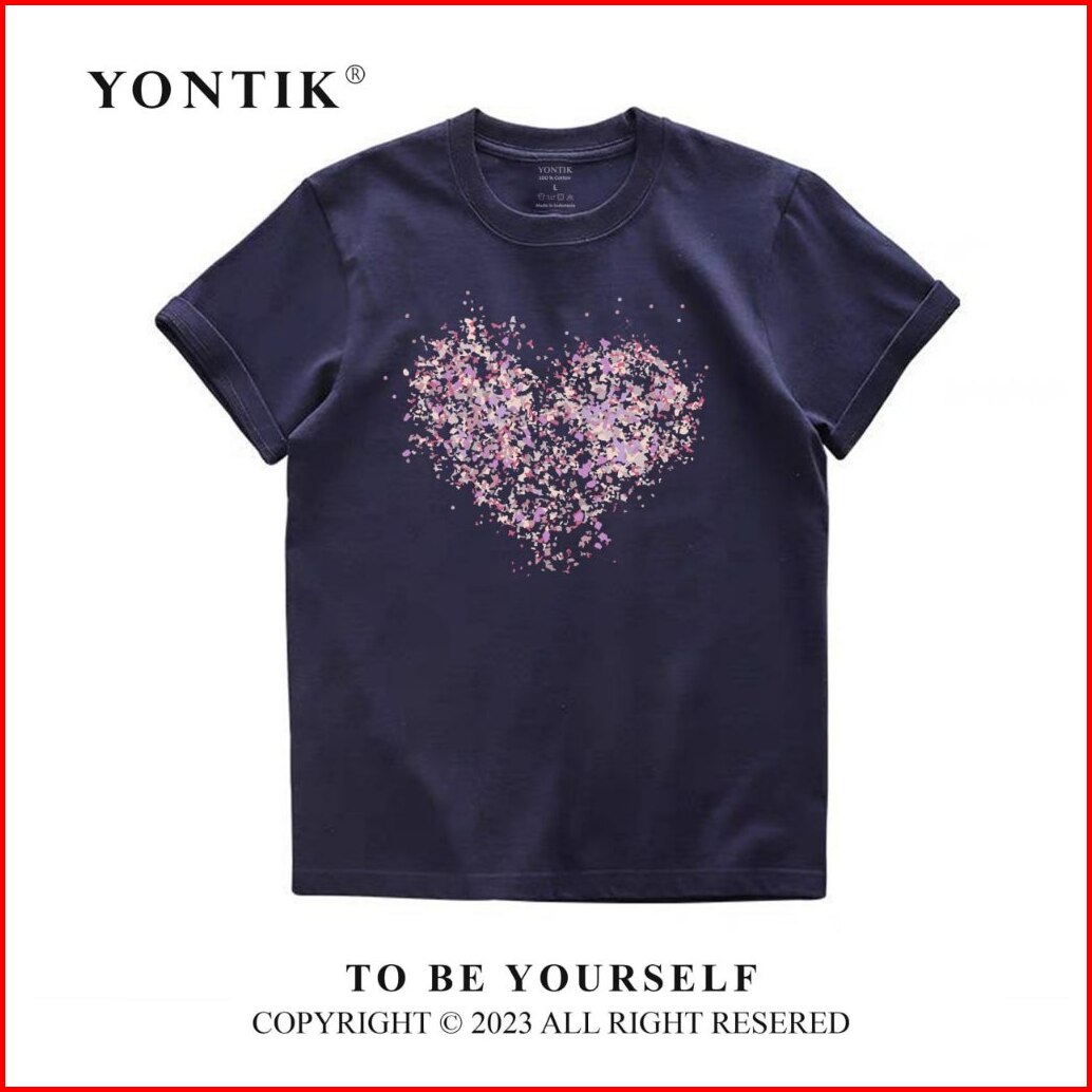 Yontik 100 Cotton 24s Kaos Distro Original Motif Love Sparkle Katun 24s Cewe Cowo Basic Style Crewneck Baju Nyaman Pasan