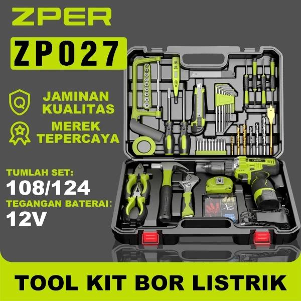 【】ZPER SET ALAT PERKAKAS & BOR BATERAI CORDLESS TANG OBENG PALU KUNCI PAS TOOLKIT 124 IN1 PCS ZP027 BOREK LASKAR PELANGI