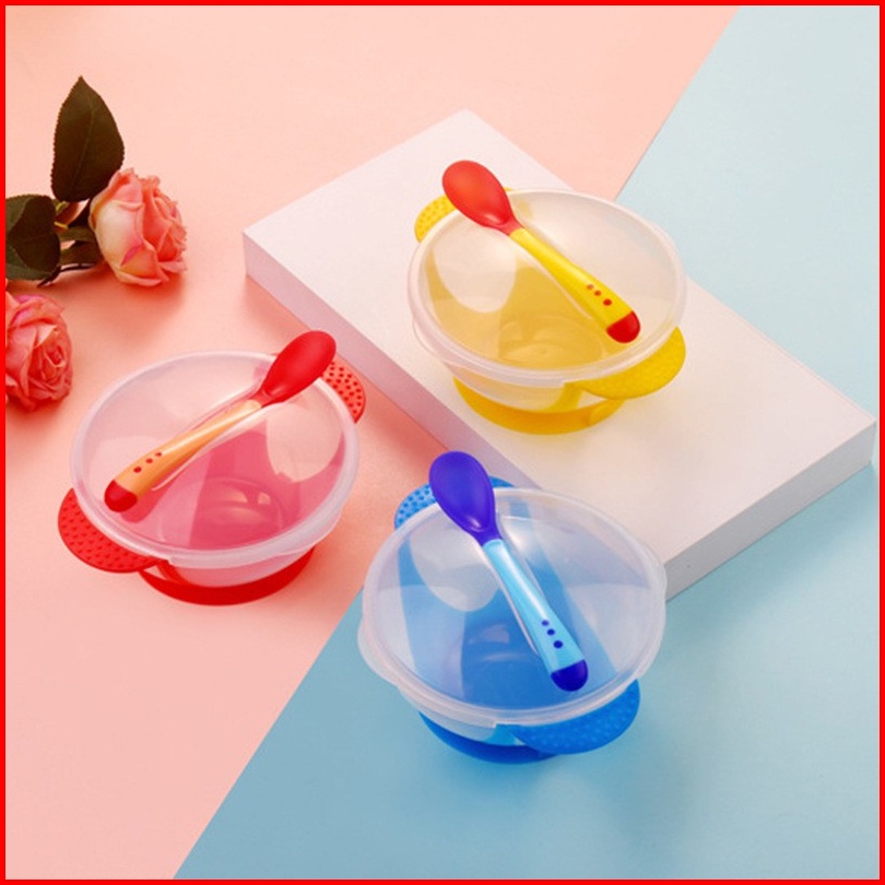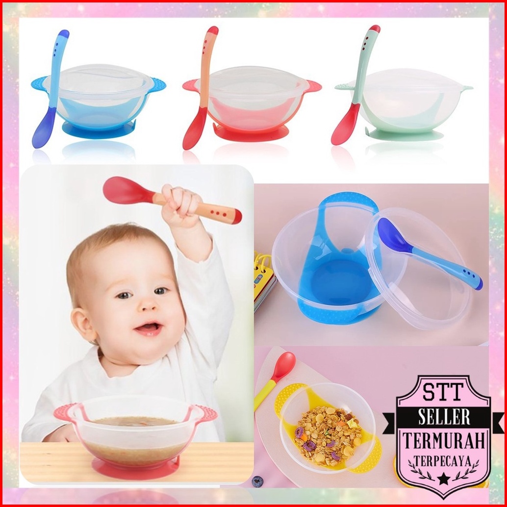 Stt Tempat Makan Bayi Silicon Mangkok Sensor Panas Anti Tumpah Alat Makan Bayi Sendok Murah