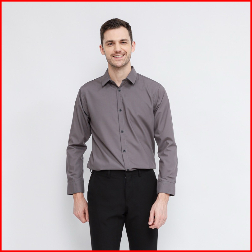 Heyplain Kemeja Dove Grey Lengan Panjang Slimfit - Kemeja Pria Lengan Panjang