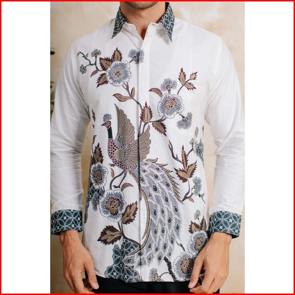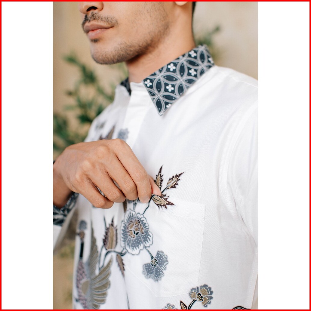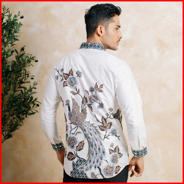Adyatma Kamala White Putih Kemeja Batik Pria Slim Fit Lengan Panjang Katun
