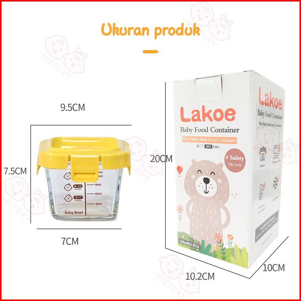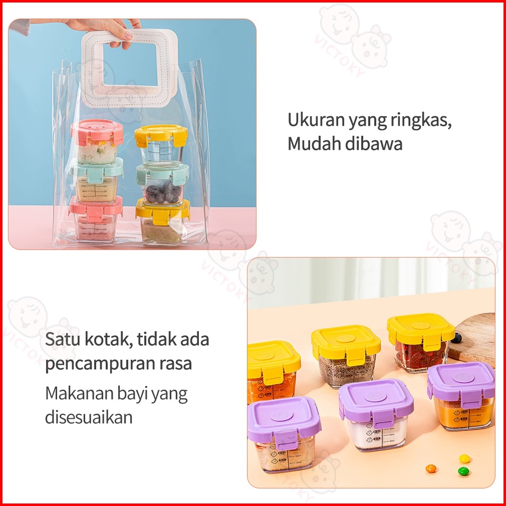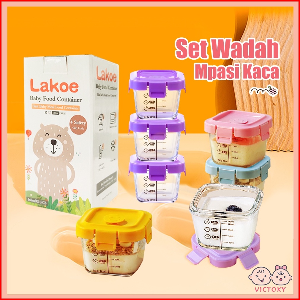 Victoky 3 In 1 Tempat Mpasi Kaca Baby Food Container Wadah Mpasi Kaca Bayi Set