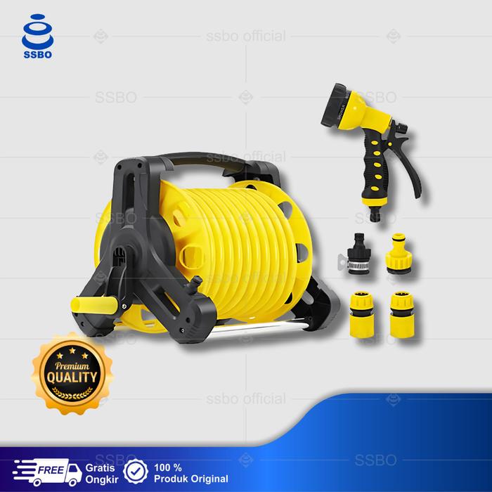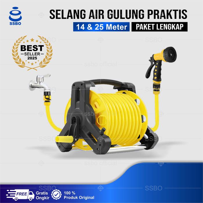 SSBO SEPAKET SEMPROTAN SELANG AIR GULUNG 14 & 25 METER KUNING JET SPRAY TAMAN PERKEBUNAN ALAT CUCI MOTOR MOBIL - 14 M