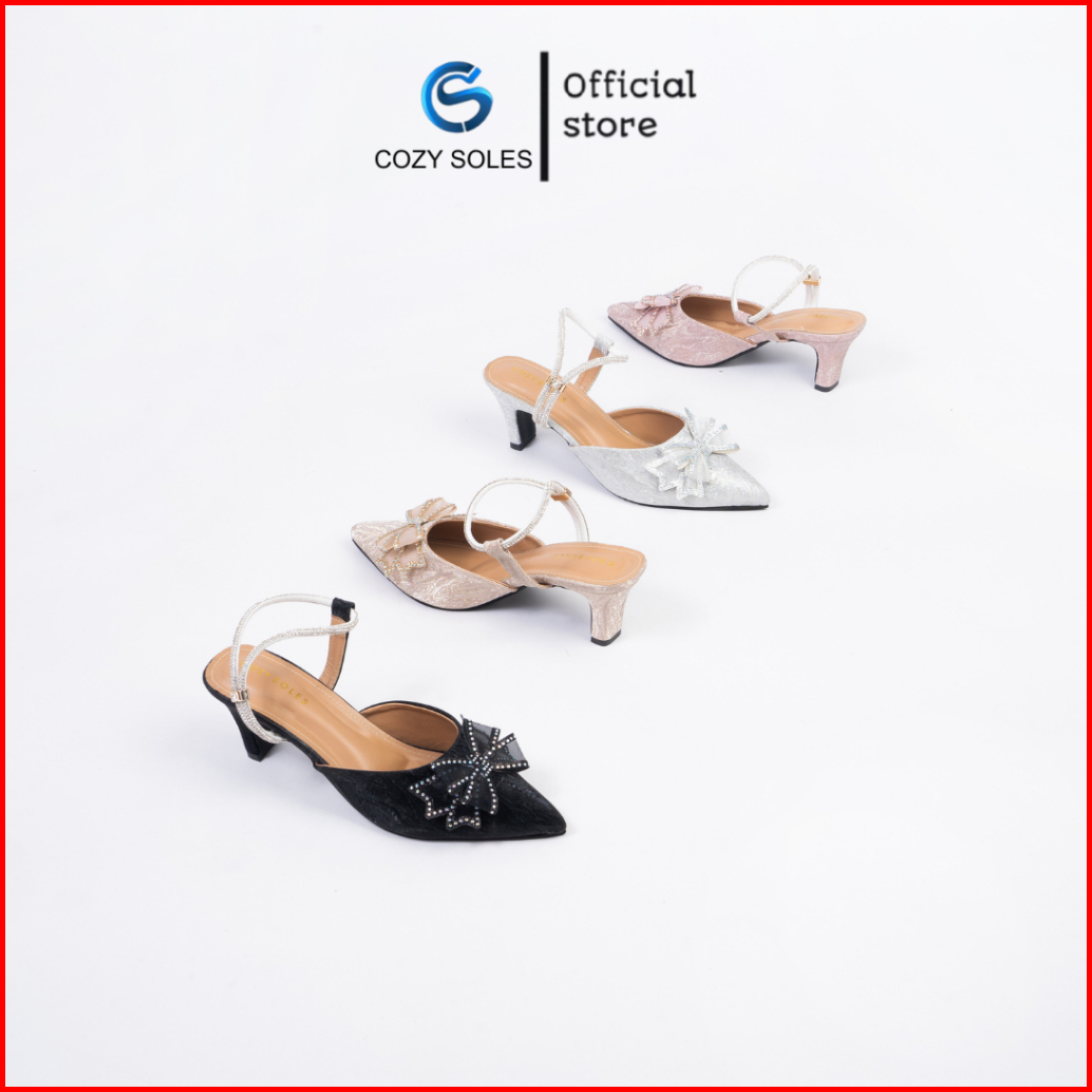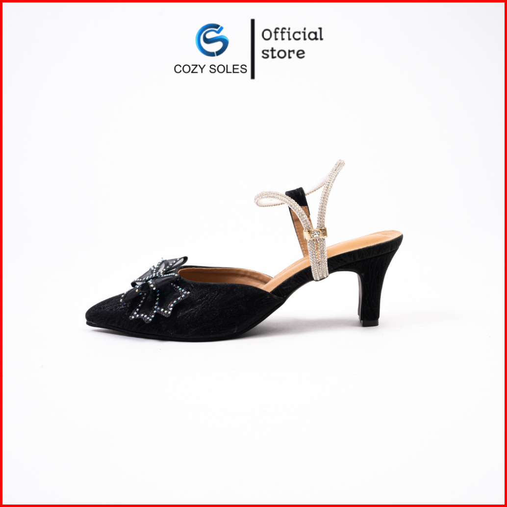 Cozy Soles - Mariposa Heels Sepatu Heels Pesta Wanita Ankle Strap Bahan Kanvas Glitter Hak 7cm