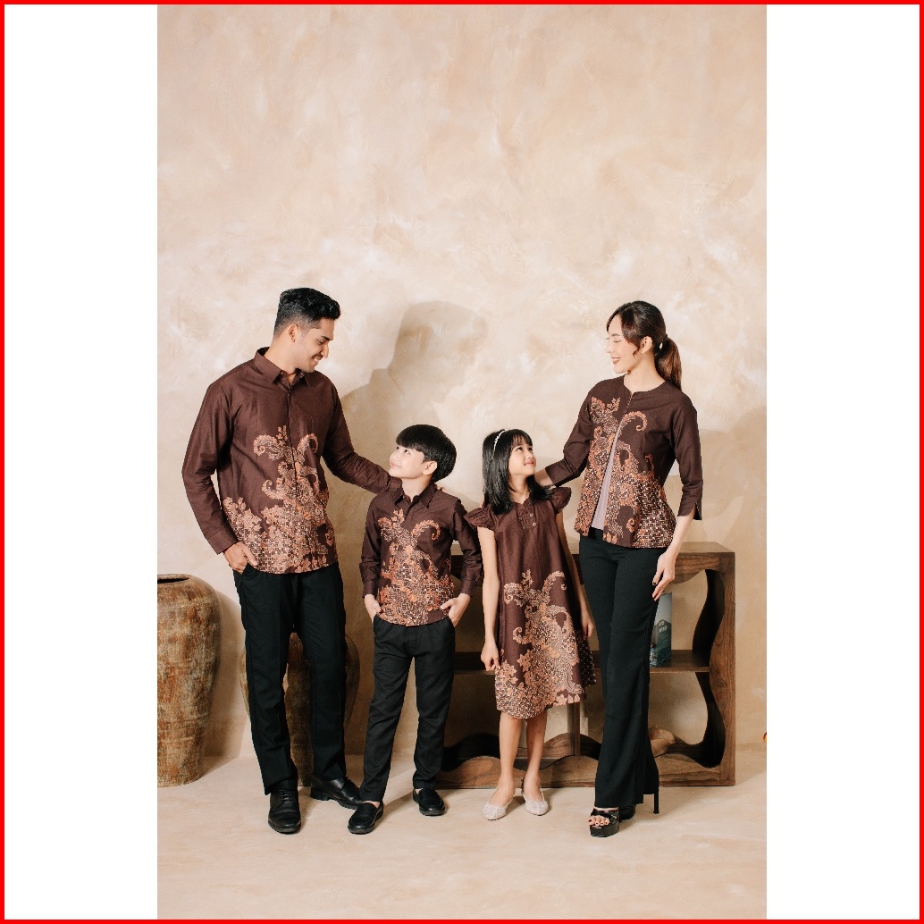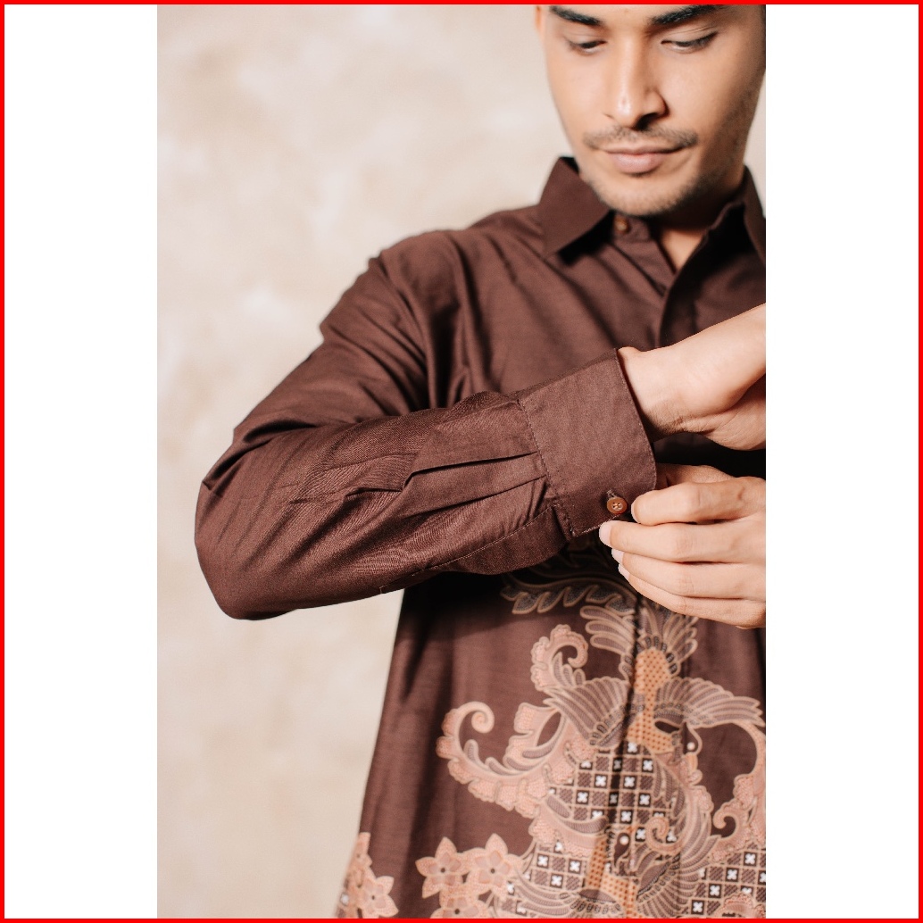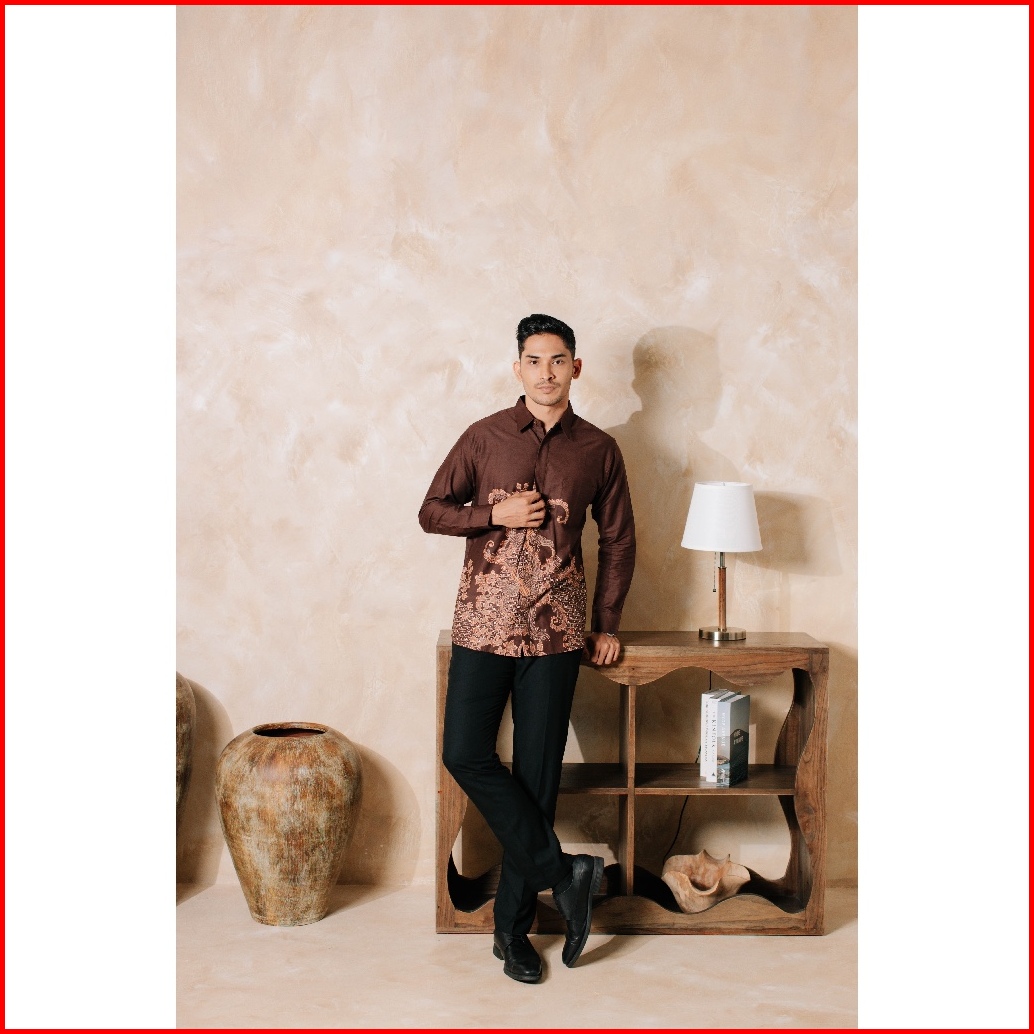 Adyatma Kavindra Mahogany Brown Kemeja Batik Pria Slim Fit Lengan Panjang Katun Slimfit