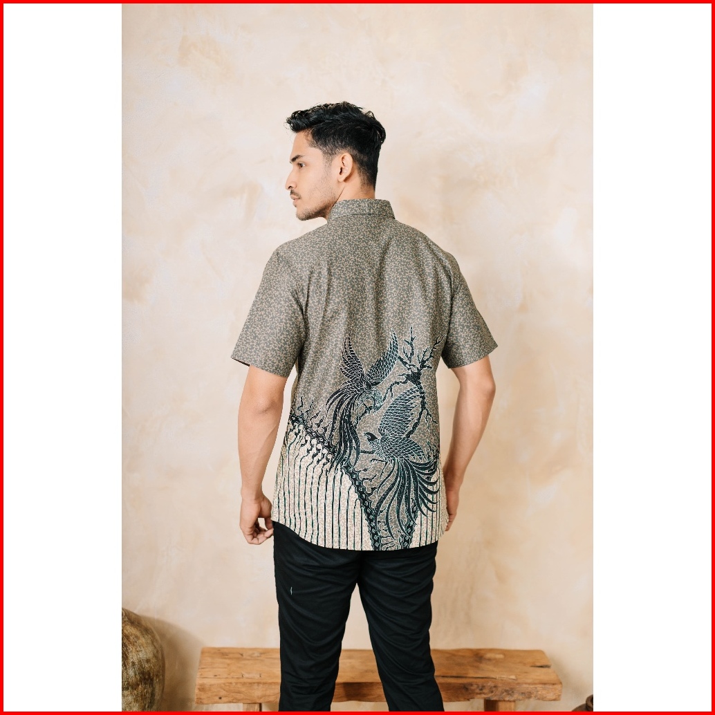 Adyatma Atmara Grey Kemeja Batik Pria Slim Fit Lengan Pendek Katun