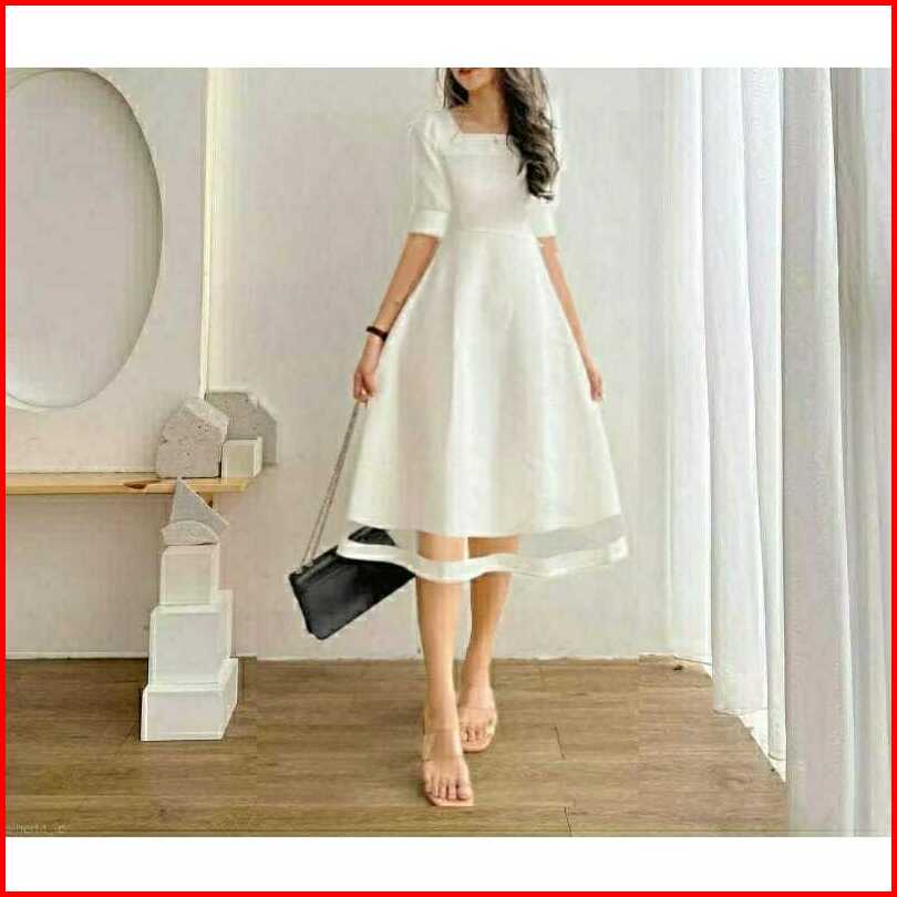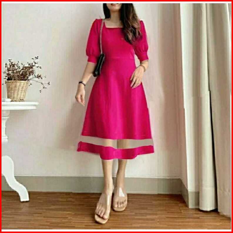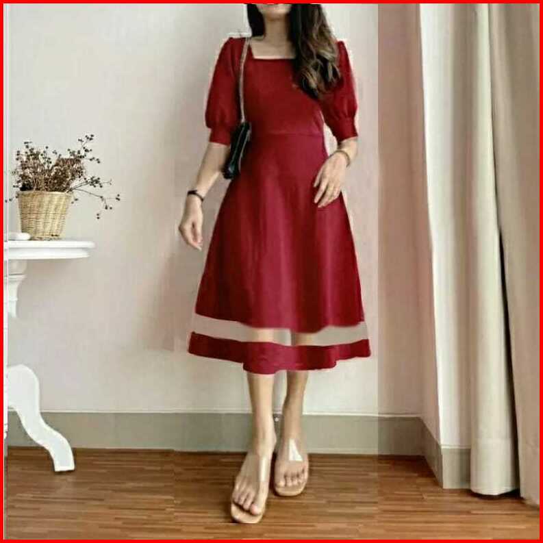 Terlaris Dres Alika Kombinasi Tile Scuba Dress Kekinian Dress Kantor Dress Cantik Size S.m.l.xl Acara Casual Formal Nata