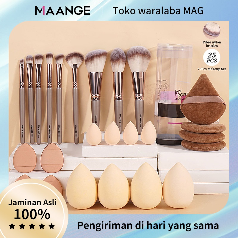 Maange 9Pcs Set Kuas Rias Lembut Fluffy Makeup Kosmetik Alat + 16Pcs Spons Premium Make Up Set