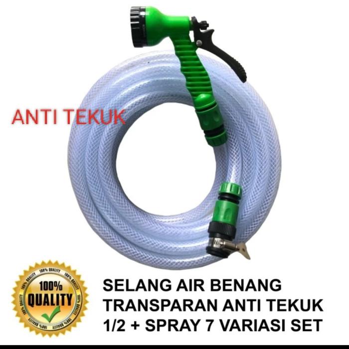 SELANG AIR BENANG TRANSPARAN ANTI TEKUK 1/2 + SPRAY 7 VARIASI SET - 10 M
