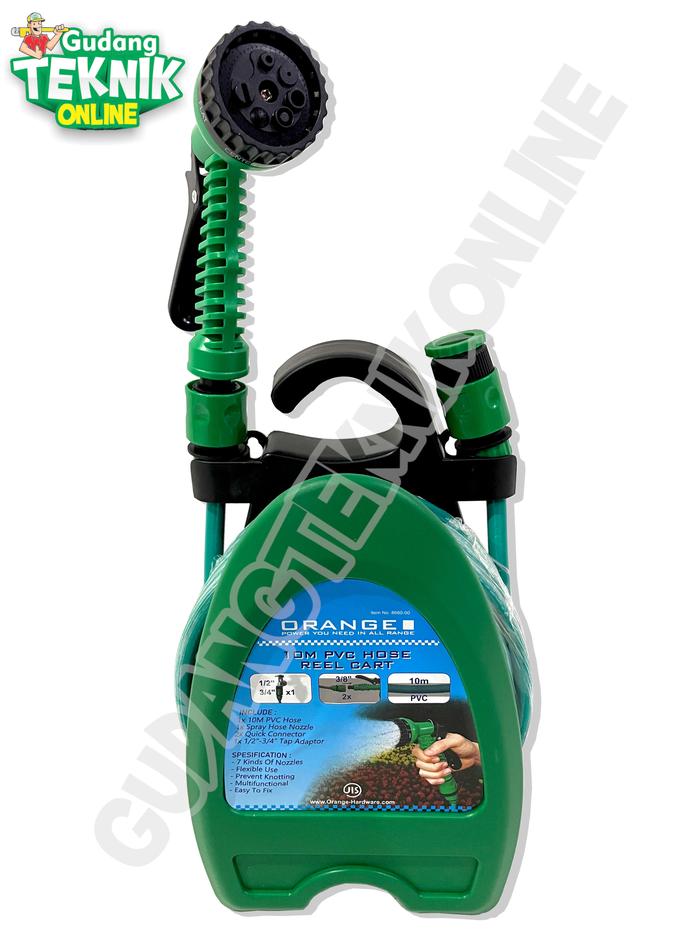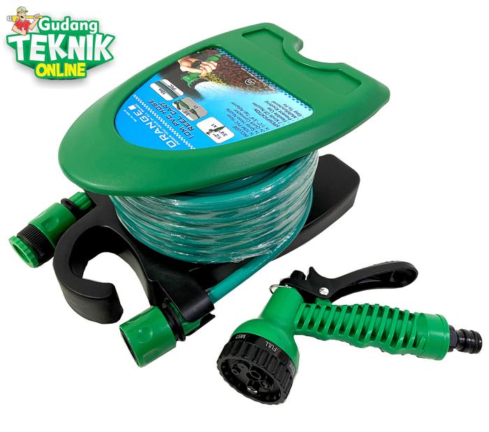SEMPROTAN SELANG AIR GULUNGAN TAMAN SET 10M ORANGE / KEPALA SELANG SEMPROT AIR 10 METER - GARDEN WATER HOSE REEL ORANGE