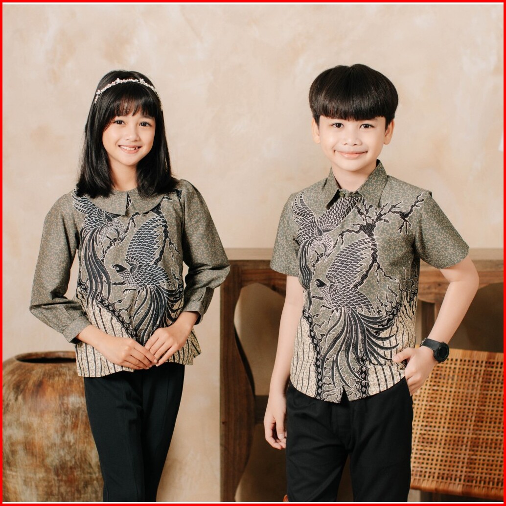Adyatma Atmara Grey Kemeja Dan Blouse Batik Anak Katun Premium