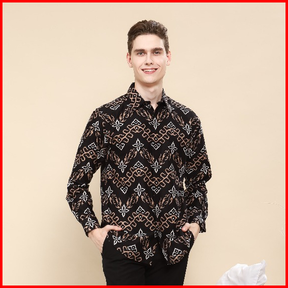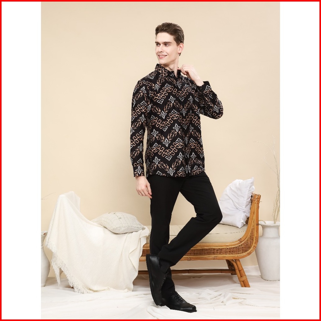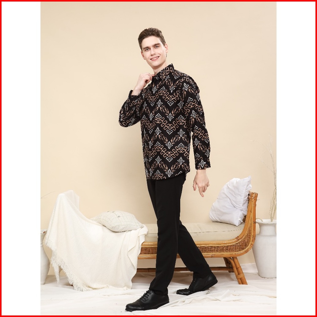Adyatma Ganeeta Black Brown Kemeja Batik Pria Slim Fit Katun Lengan Panjang