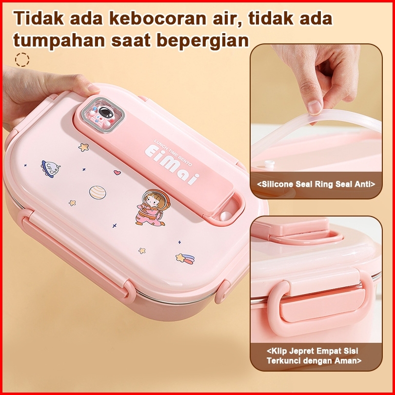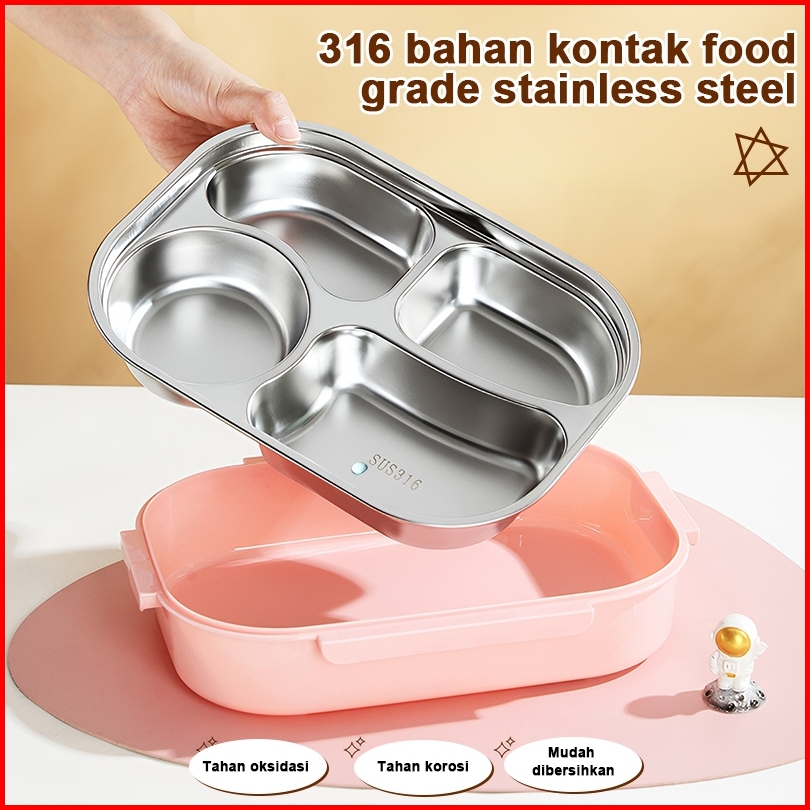 Needify Lunch Box Bento Eimai Anti Bocor Sus316 - Stainless Steel 4in1 Sekat Bento Pemanas Praktis