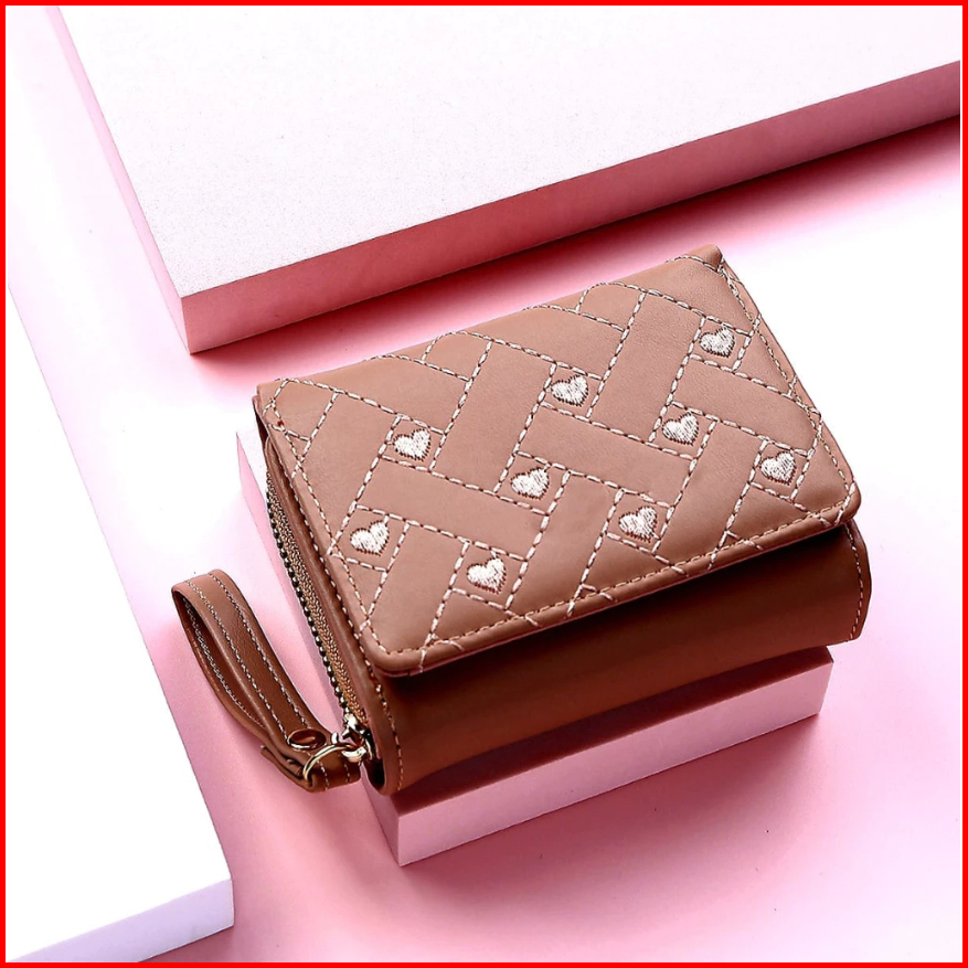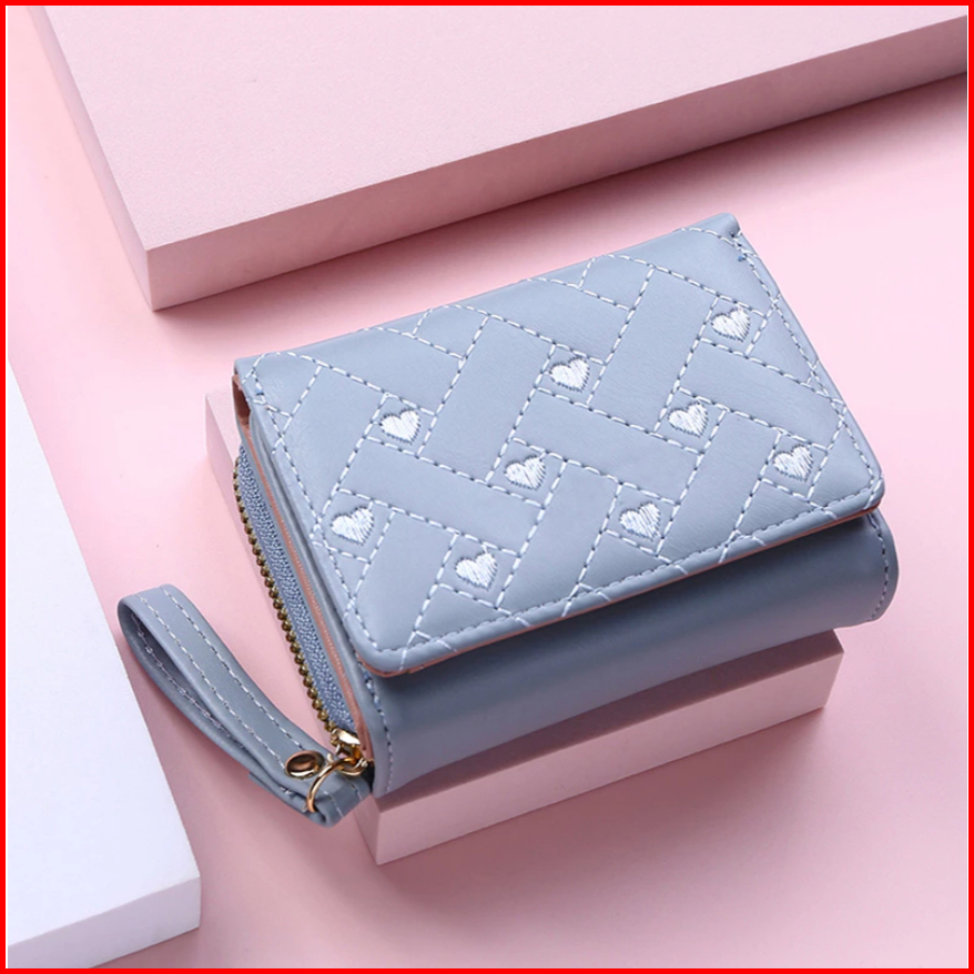Dompet Wanita Aurora Mini Lipat Motif Love Bordir Dompet Cewek Lucu Imut Elegan Warna-warni Dompet Kartu Koin Uang Kerta